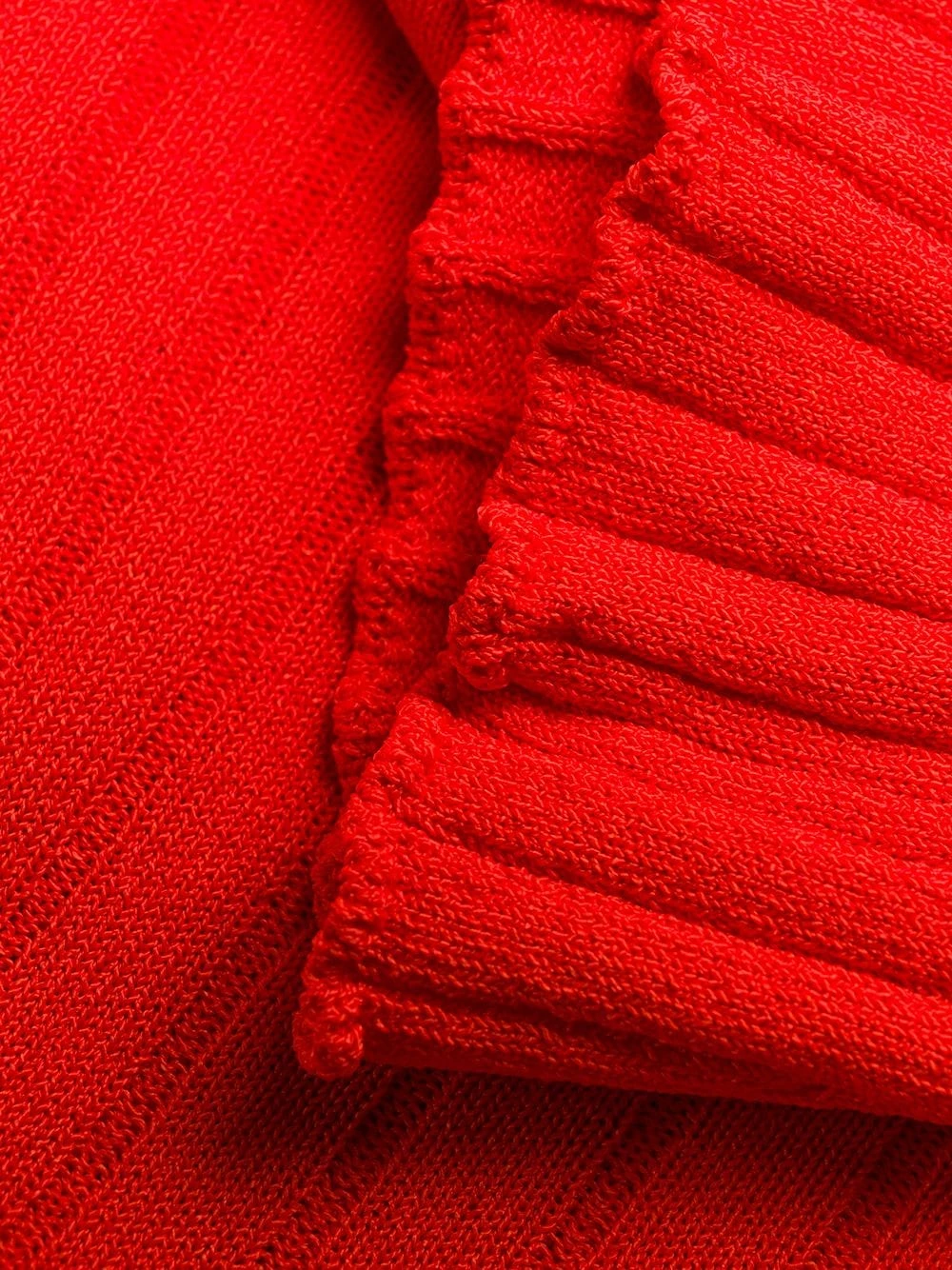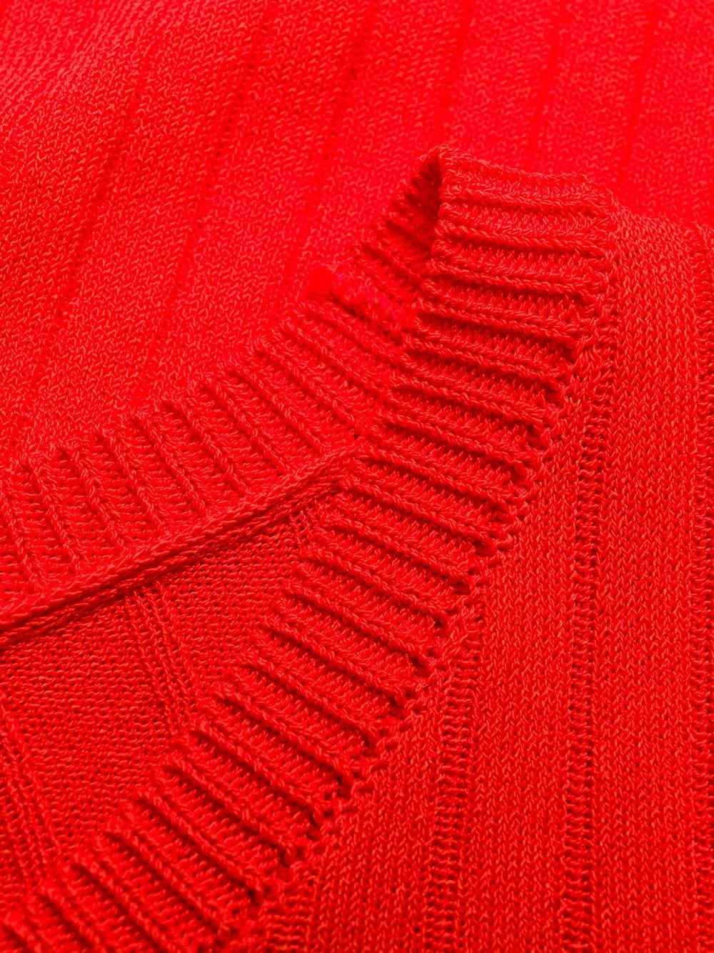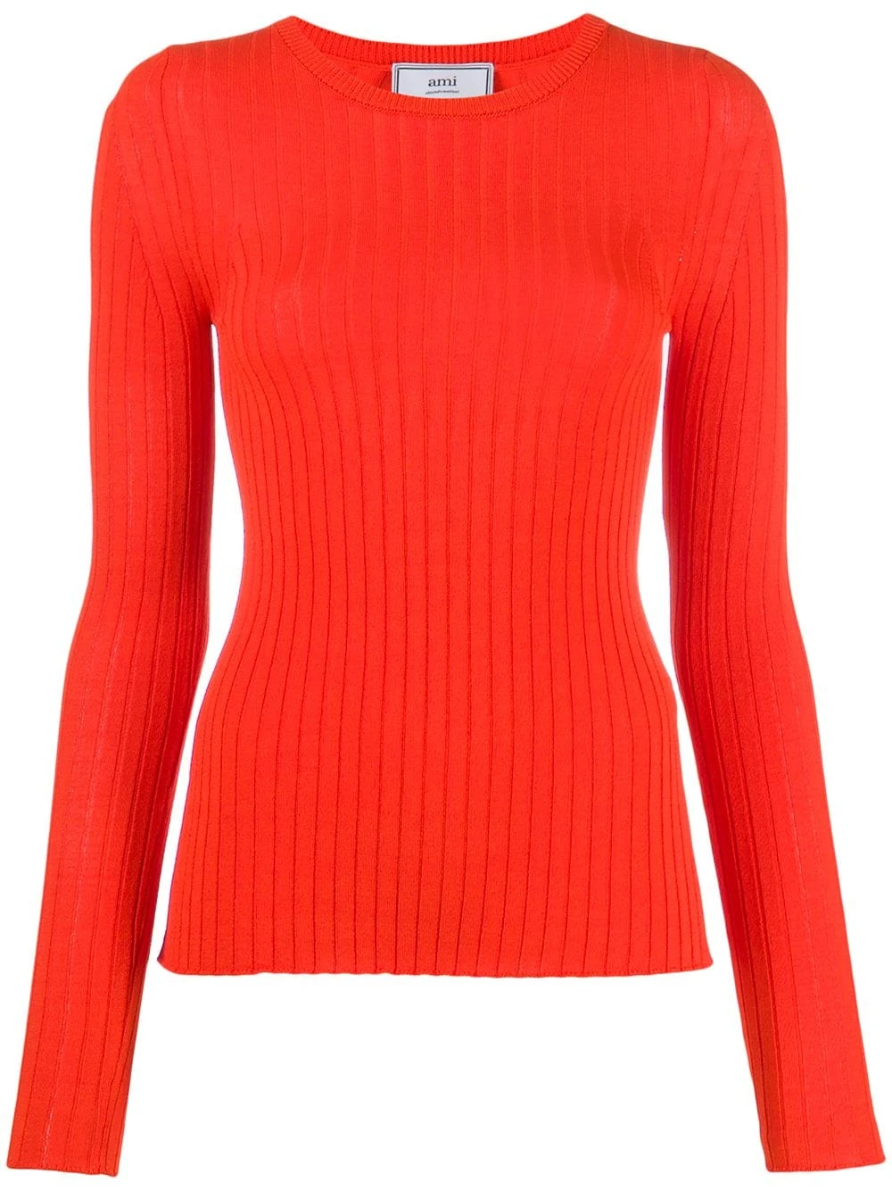 Pull classique AMI Paris avec encolure ronde nervurée, manches longues, ourlet et poignets nervurés et coupe slim. Couleur : rouge.