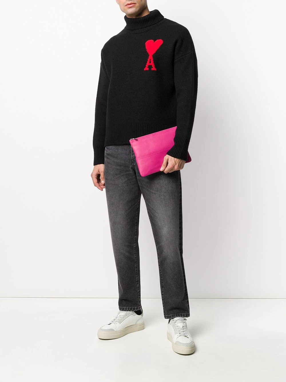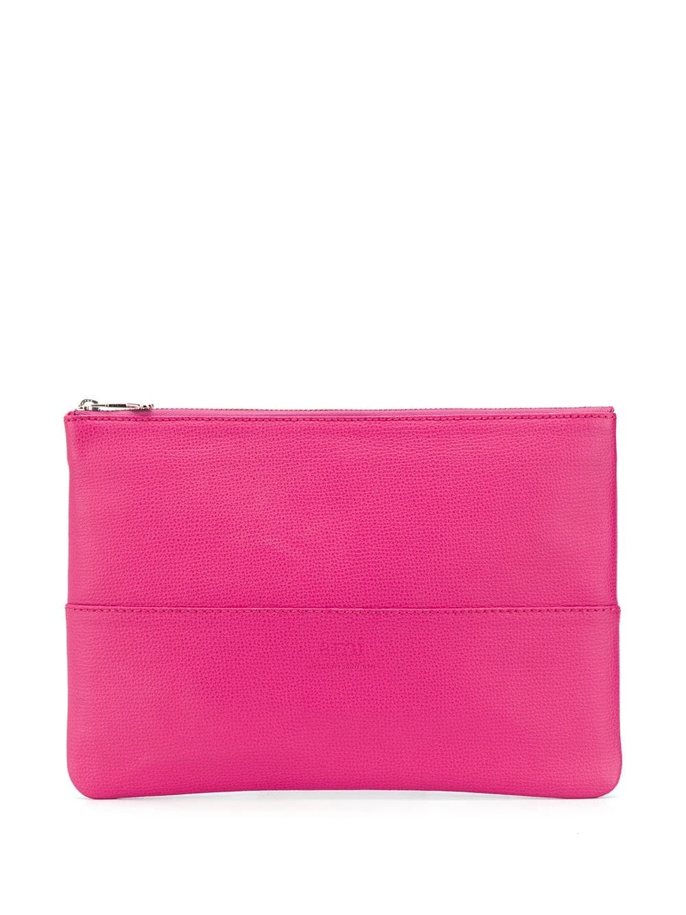 Pochette zippée à logo en cuir de veau AMI Paris avec logo embossé sur le devant, fermeture zippée sur le dessus et compartiment intérieur. Couleur : rose.
