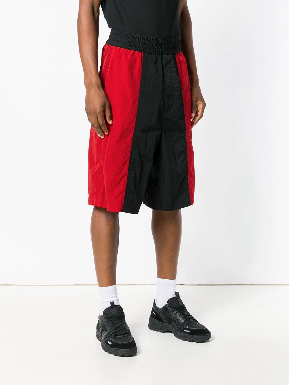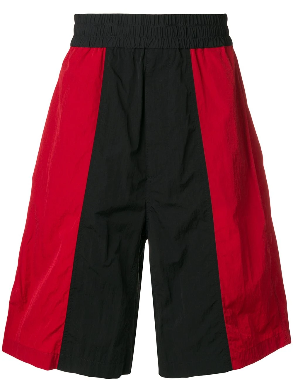 Bermuda oversize Ami Alexandre Mattiussi avec taille normale, ceinture élastique, aspect souple, coupe droite, design à empiècements colour block, poches latérales et poches arrière passepoilées.