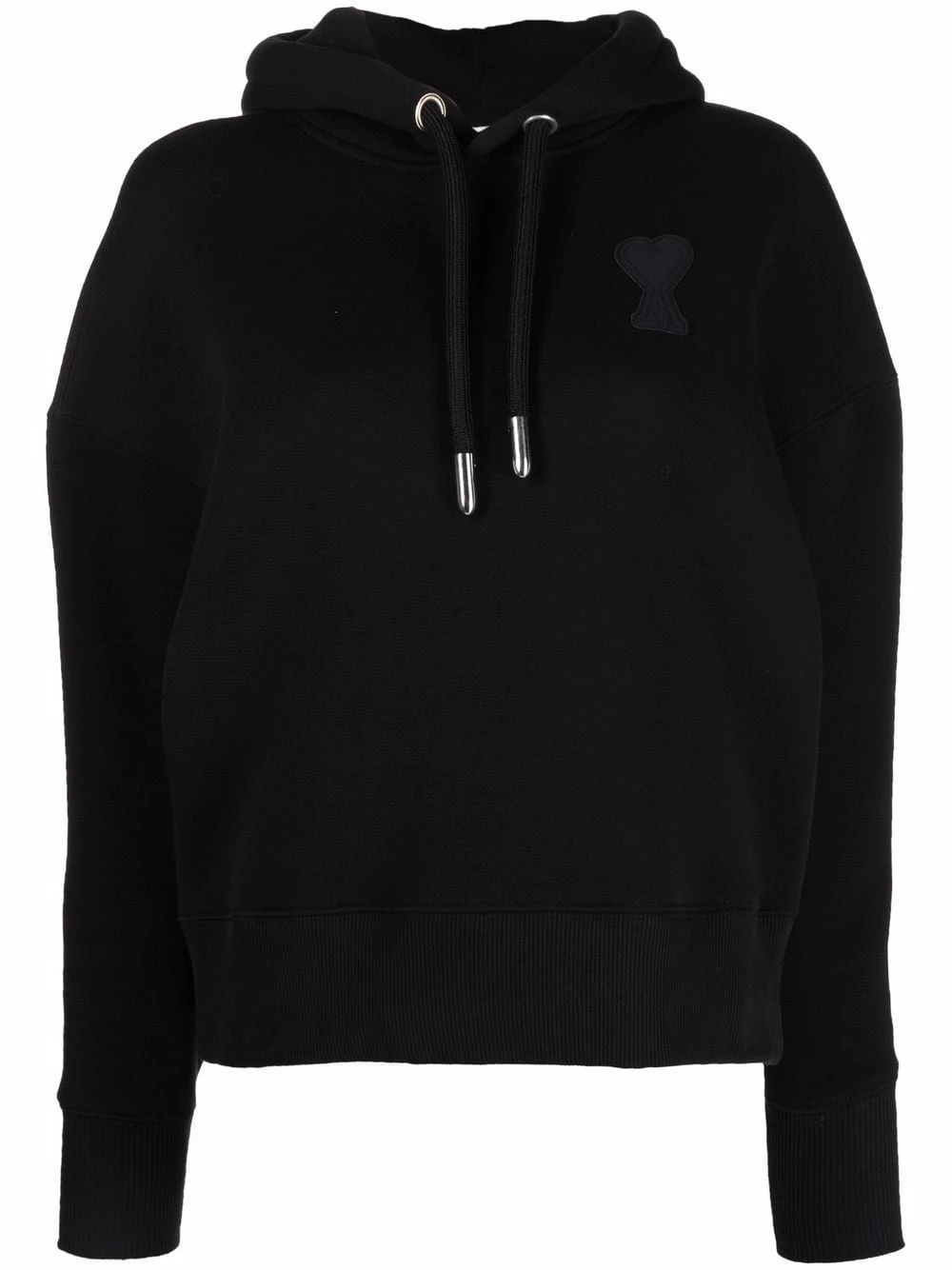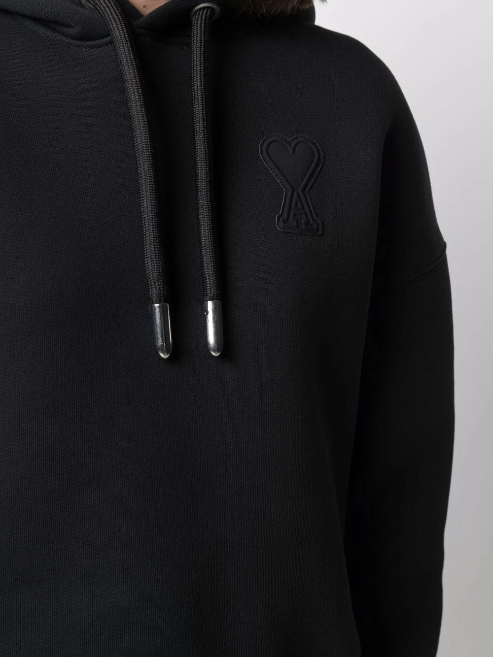 Capuche à lien de resserrage, logo Ami de Coeur signature, manches longues, poignets nervurés, ourlet nervuré. Couleur : noir.