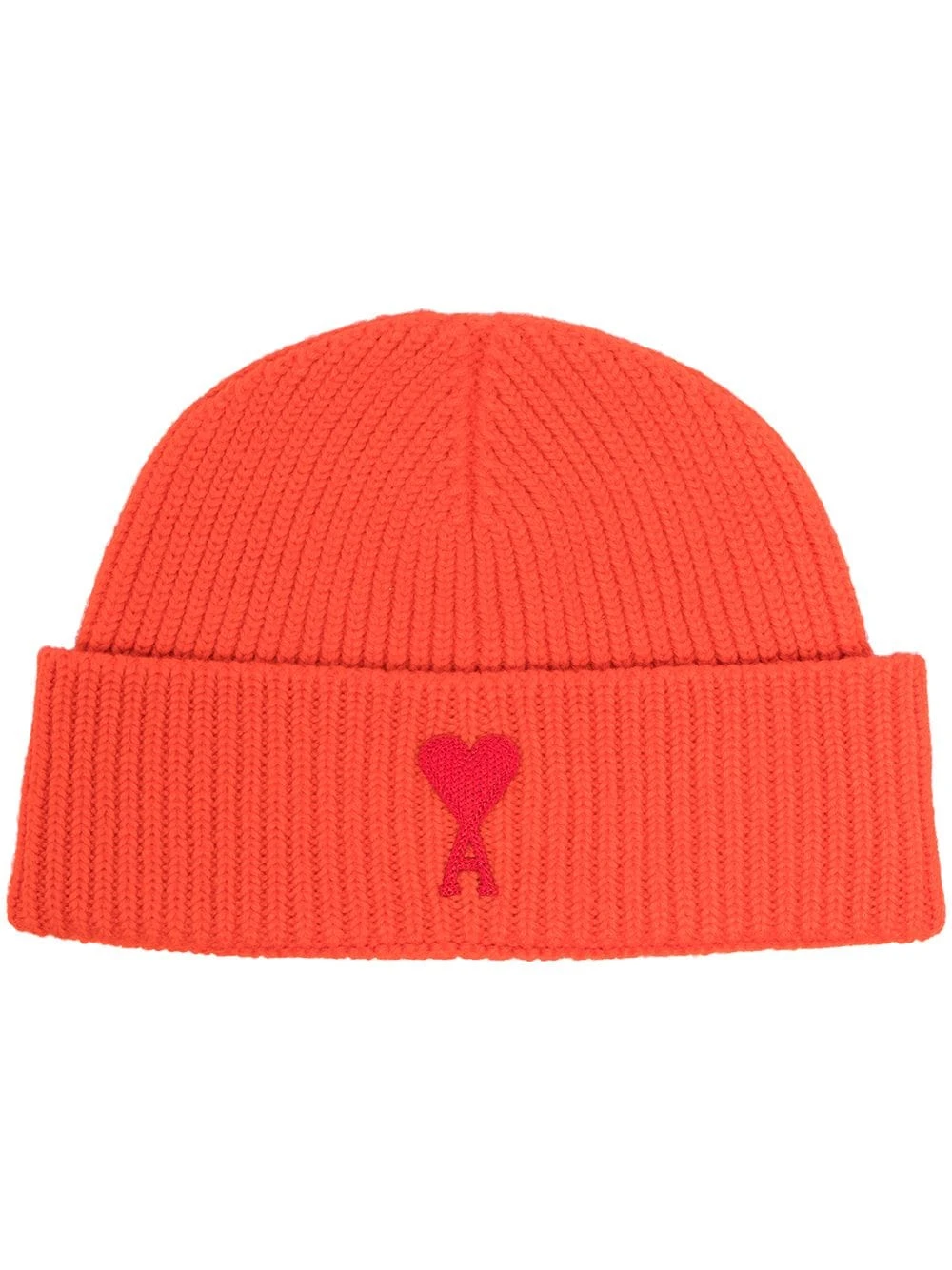 Maille nervurée, logo Ami de Coeur signature, bord retroussé. Couleur : orange. Matière : laine vierge.