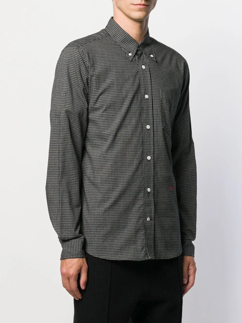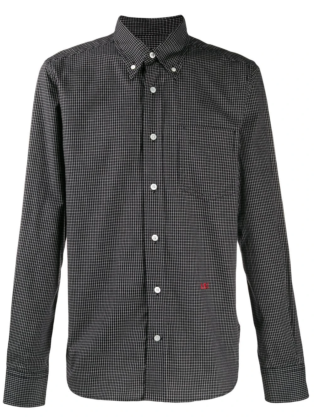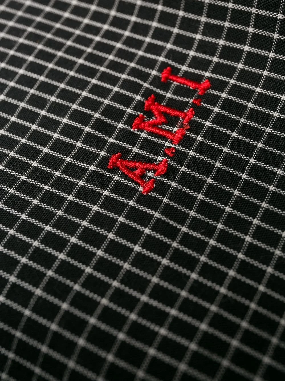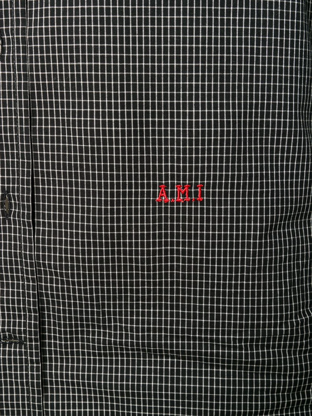 Chemise Boy Fit boutonnée en coton AMI Alexandre Mattiussi avec col boutonné, boutonnière sur le devant, poche poitrine, manches longues, carreaux et ourlet incurvé.