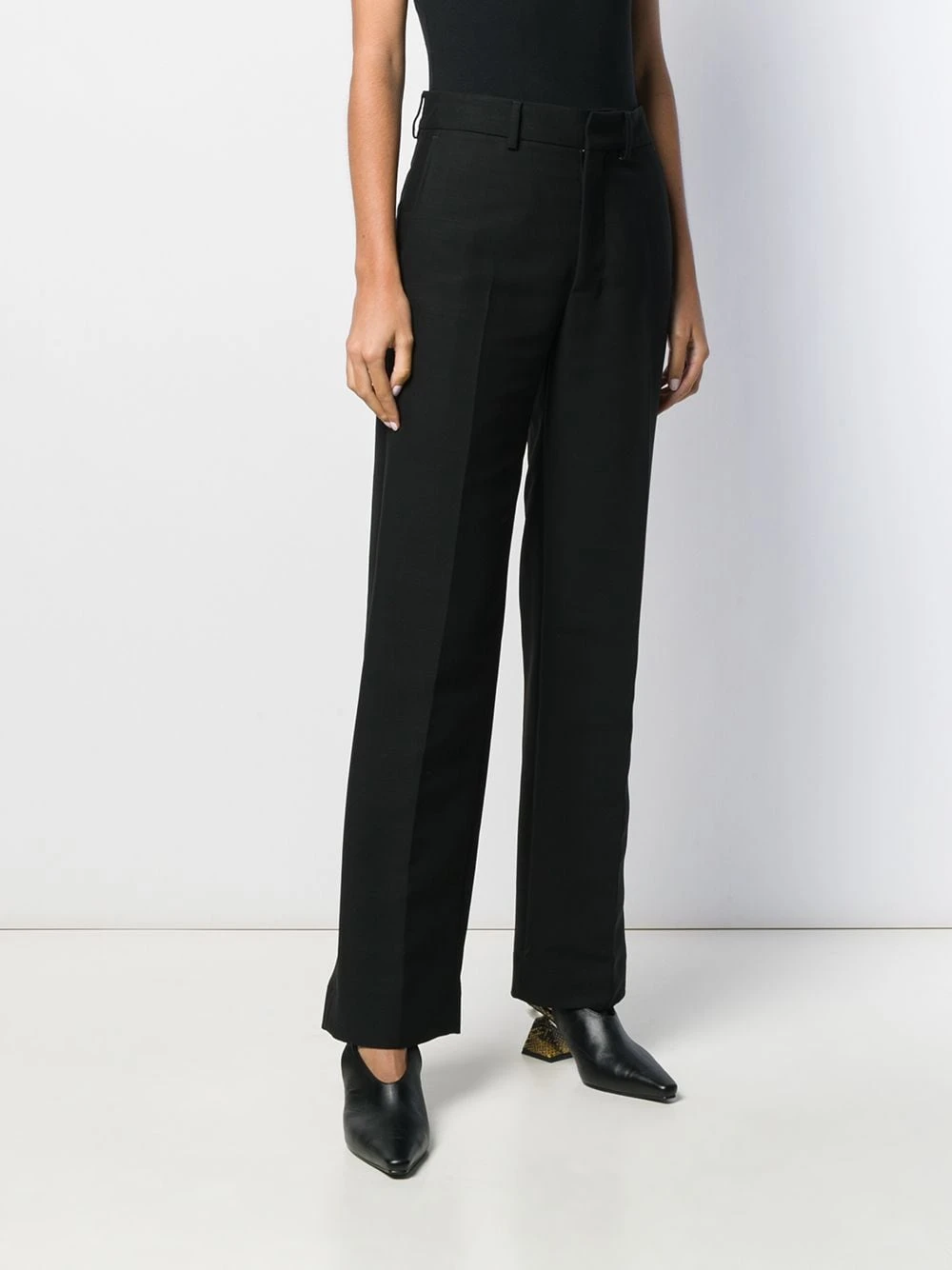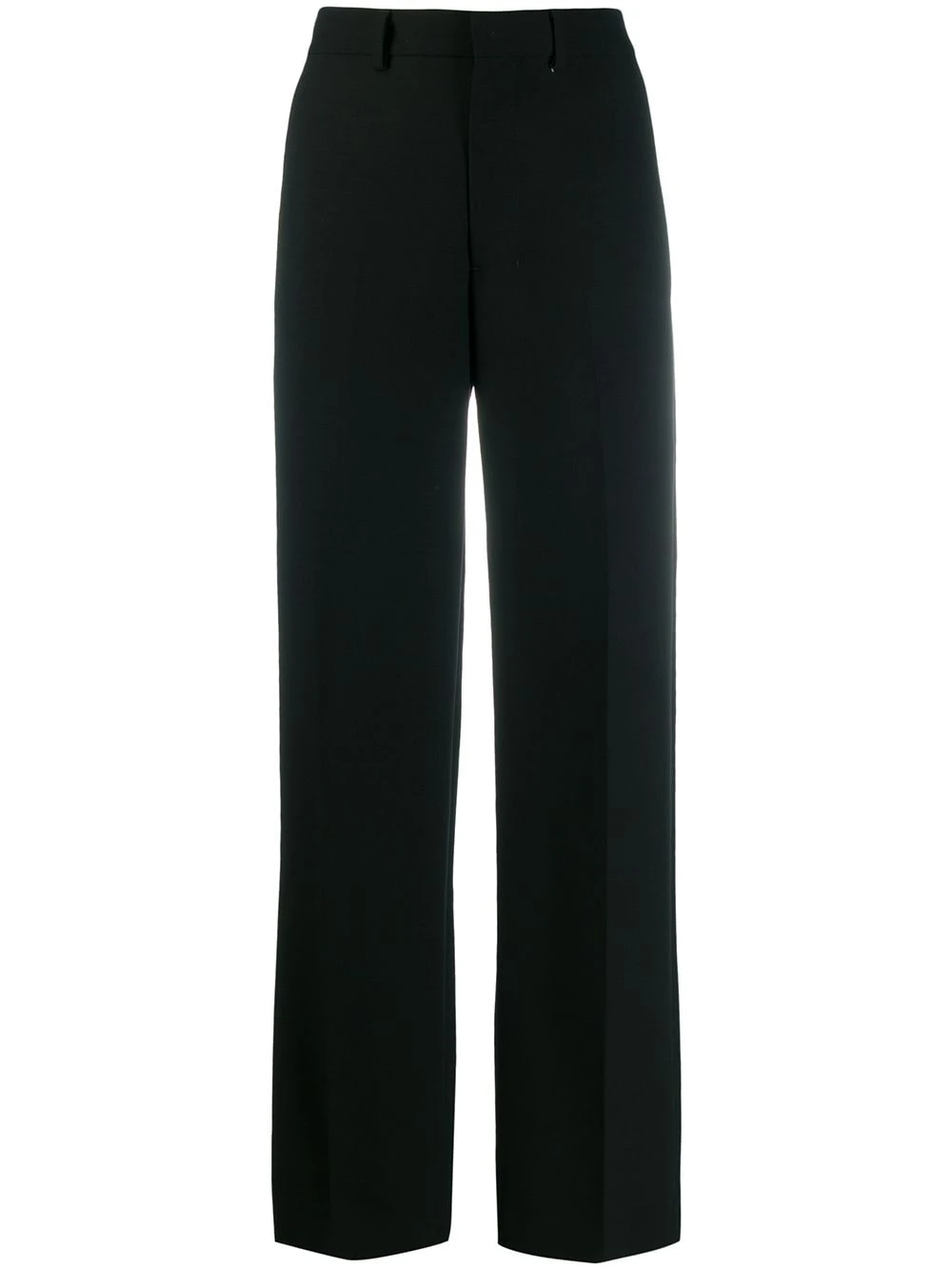 Pantalon ample à taille haute AMI Paris avec taille haute, passants de ceinture, fermeture devant dissimulée, poches latérales fendues, deux poches arrière passepoilées et boutonnées, coupe droite et coupe ample. Couleur : noir.