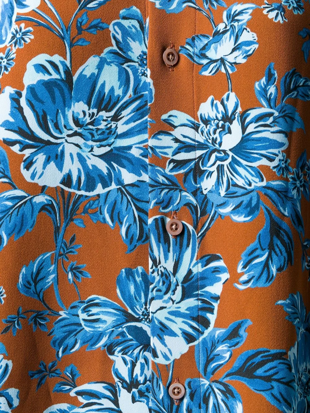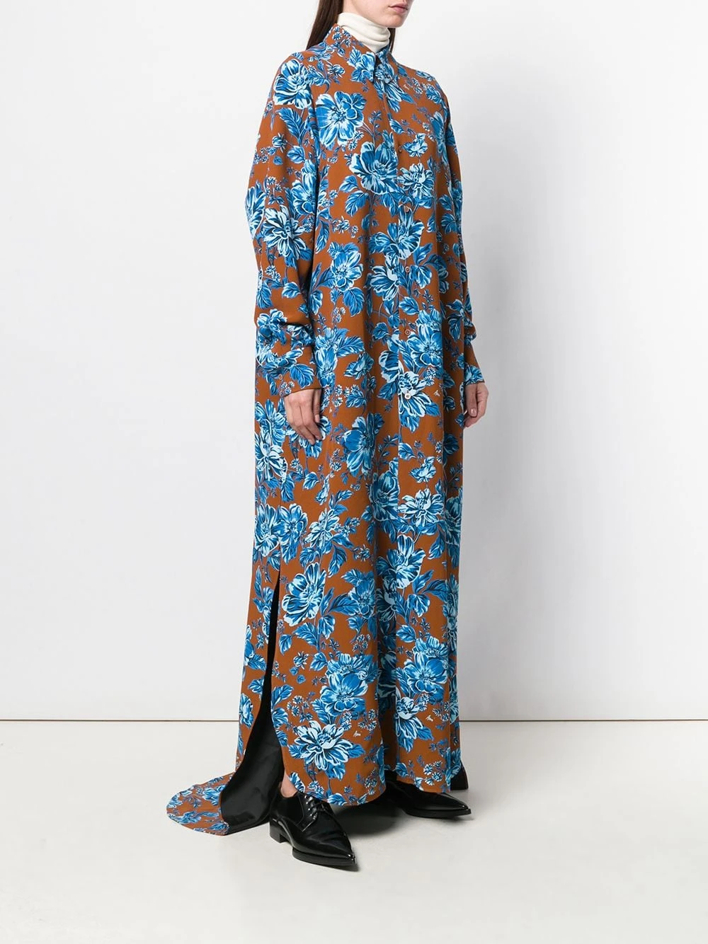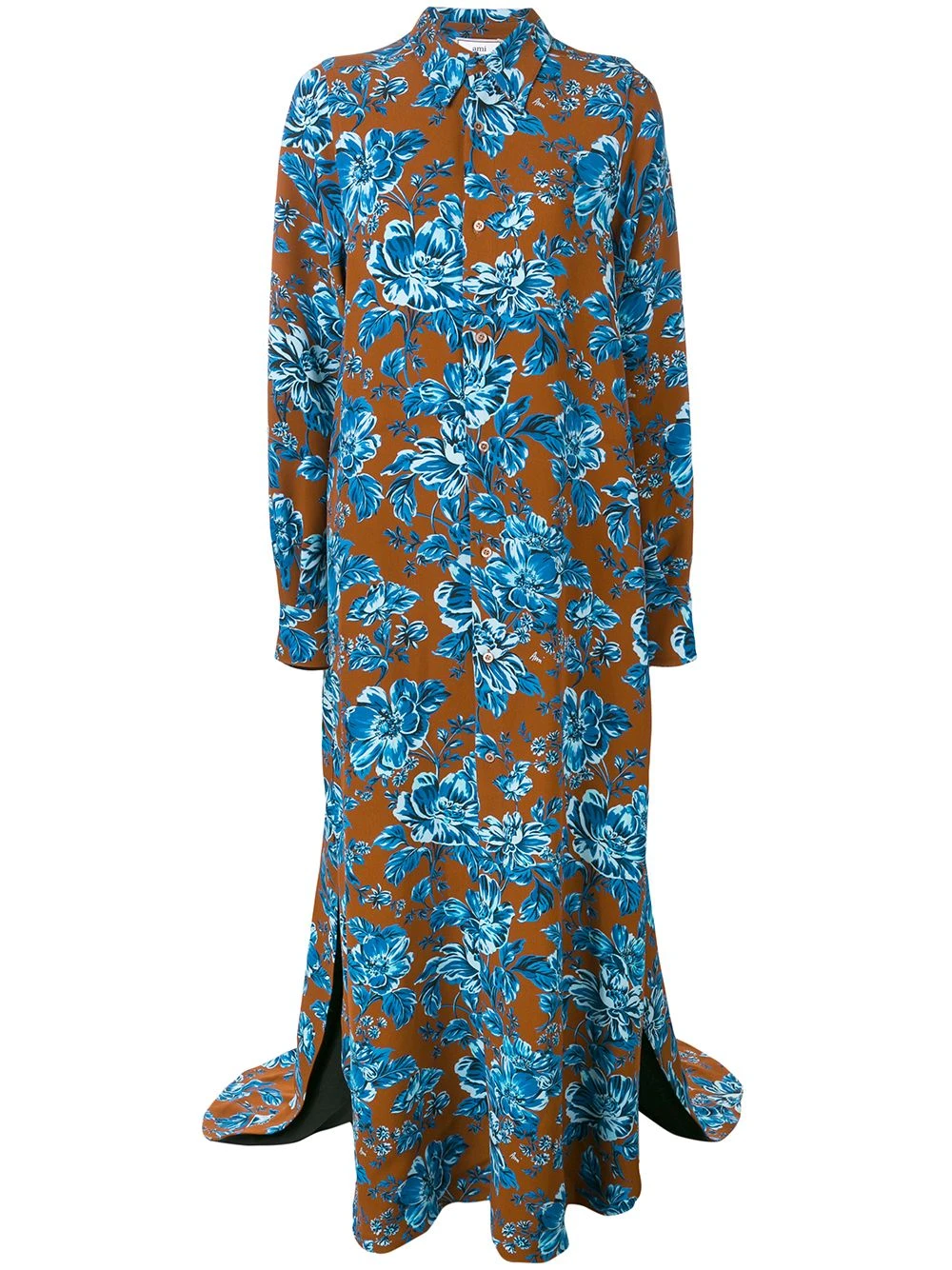 Robe-chemise longue à fleurs AMI Alexandre Mattiussi avec col italien, boutonnière sur le devant, manches longues, fentes latérales et ourlet incurvé. Cet article taille petit, veuillez le choisir une demi-taille au dessus de votre taille habituelle.