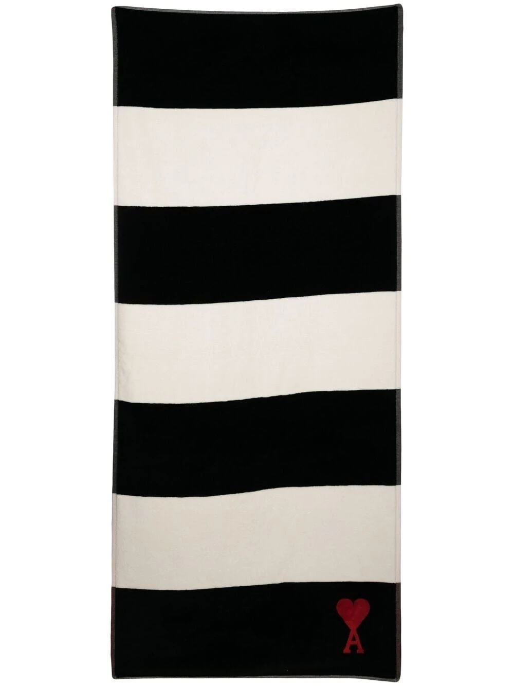 Rayures horizontales, logo Ami de Coeur signature, bords finis, forme rectangulaire.