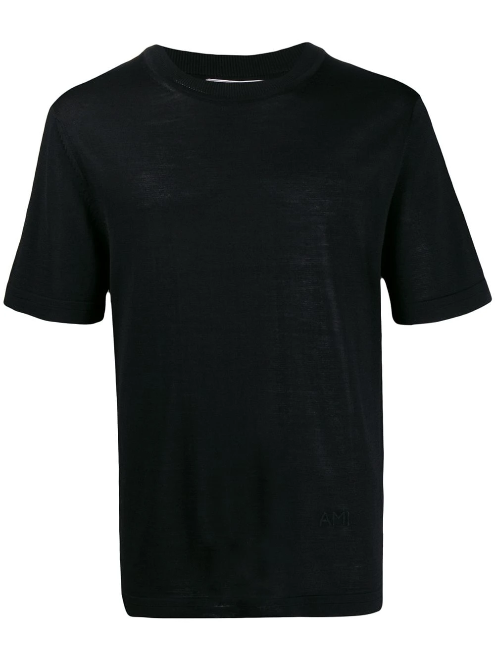 Sweat à manches courtes AMI Paris avec encolure ras du cou, manches courtes et ourlet droit. Couleur : noir.