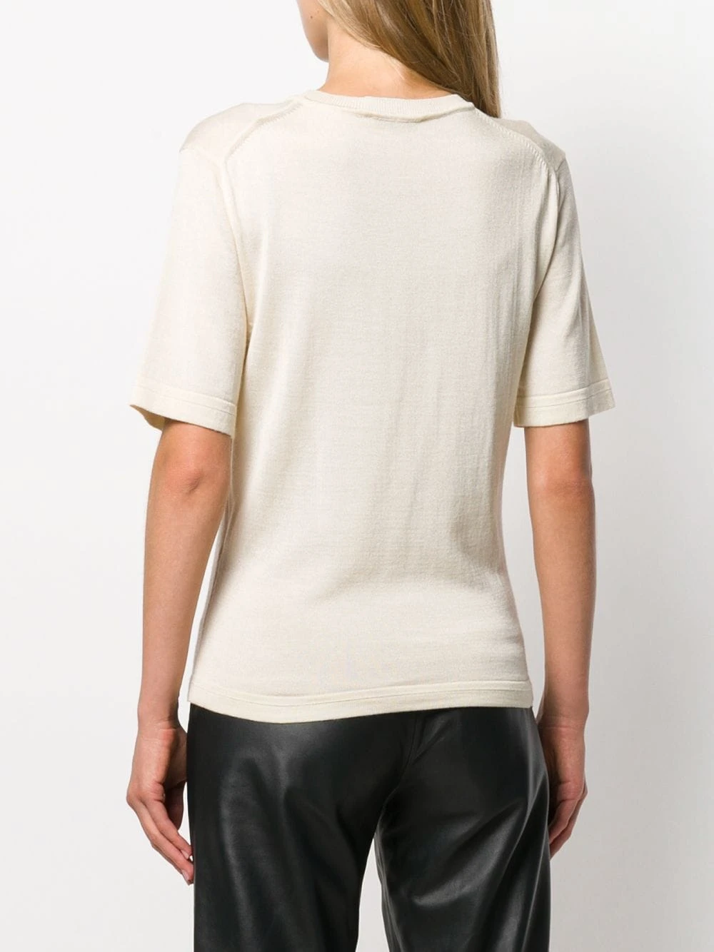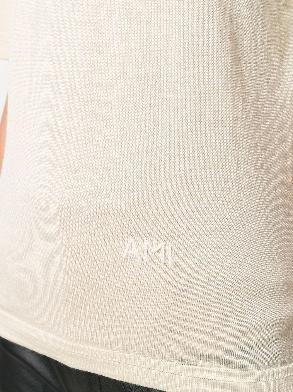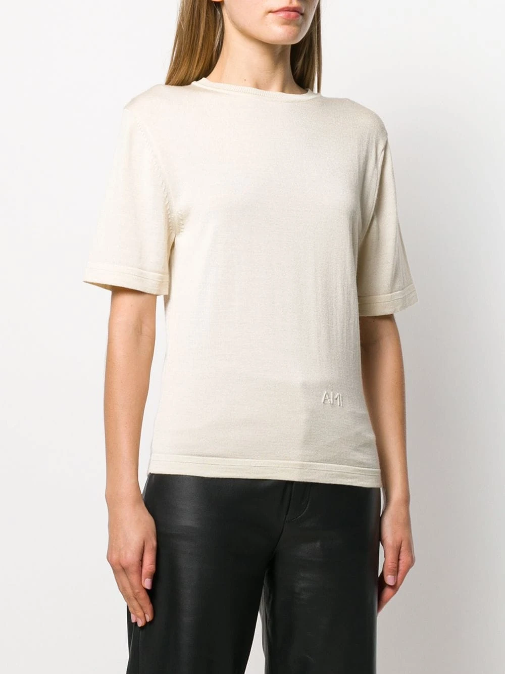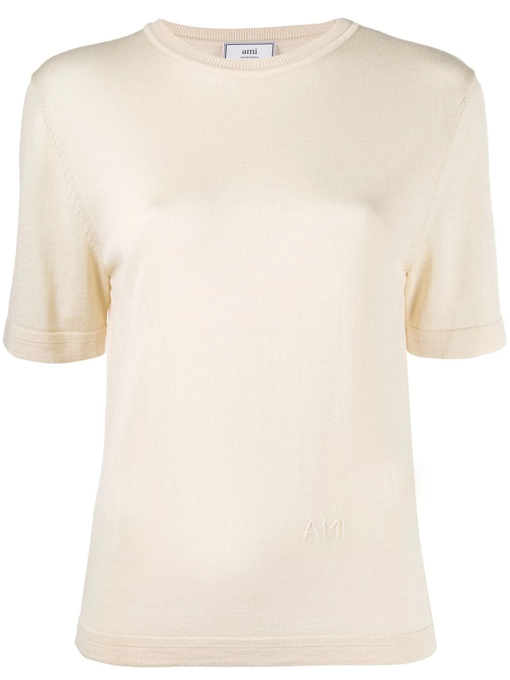 T-shirt en maille AMI Paris avec encolure ronde, manches courtes, forme détendue et en tricot. Couleur : tons neutres.