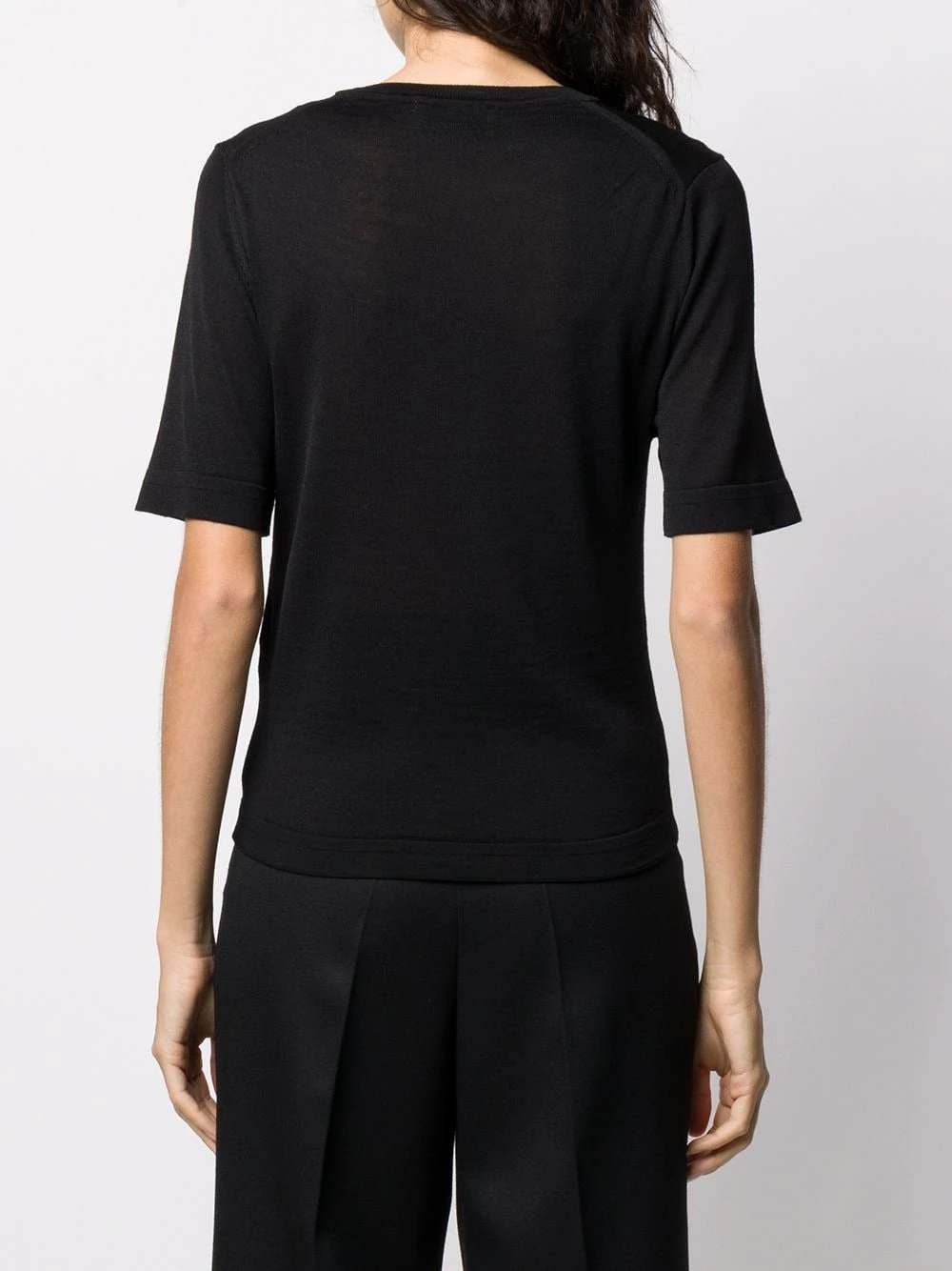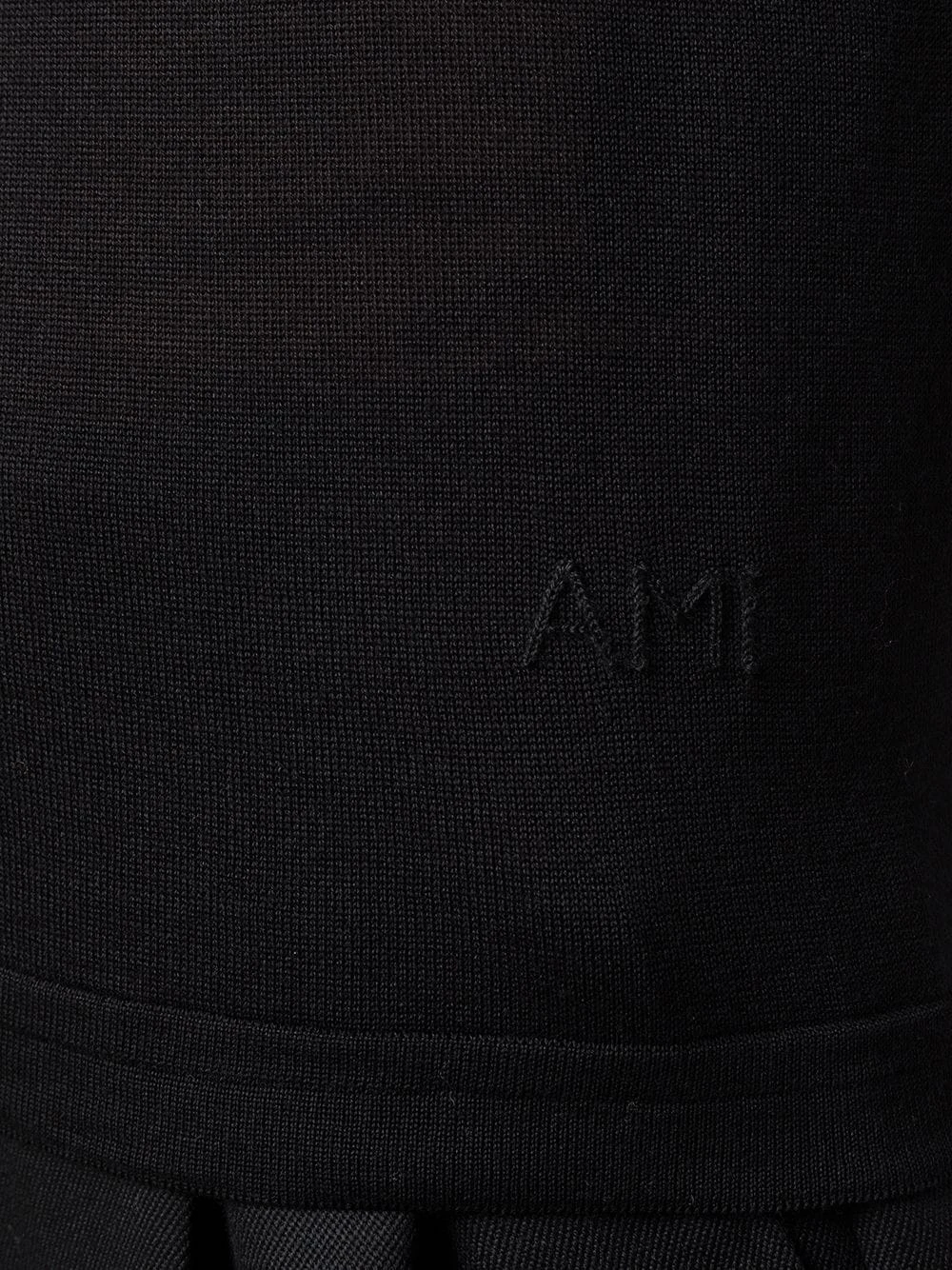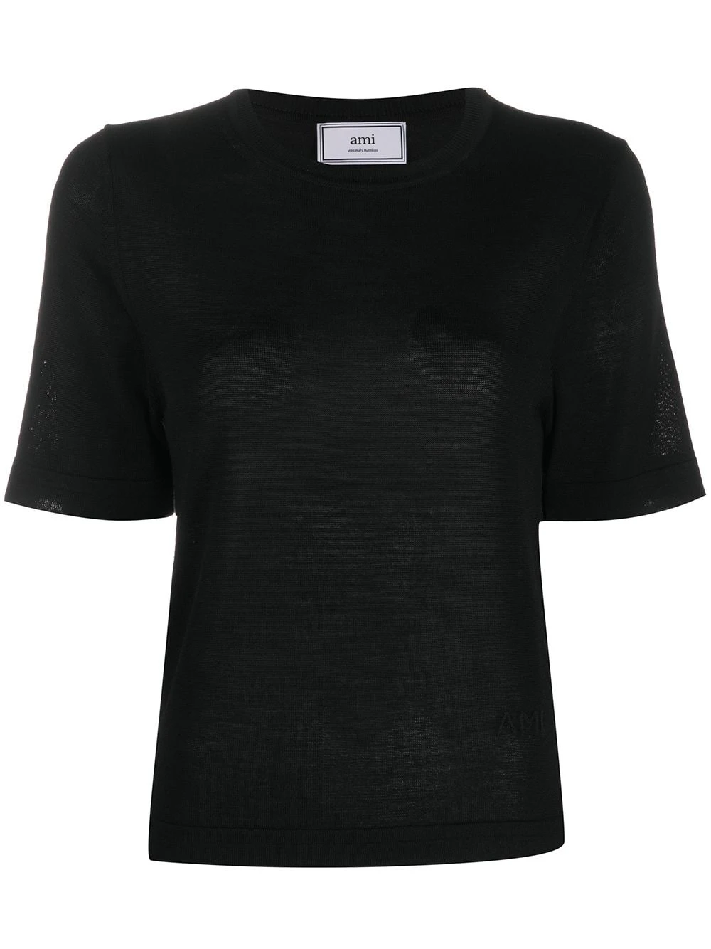 Pull à manches courtes AMI Paris avec encolure ras du cou nervurée, manches courtes, ourlet et poignets nervurés et logo du designer brodé sur la poitrine. Couleur : noir.
