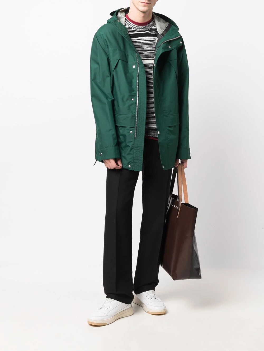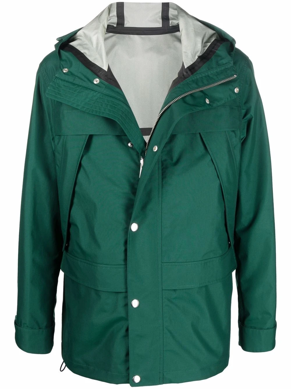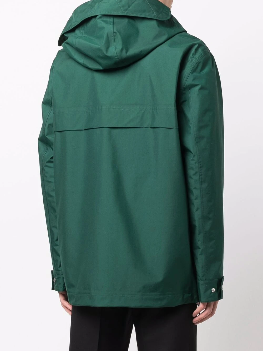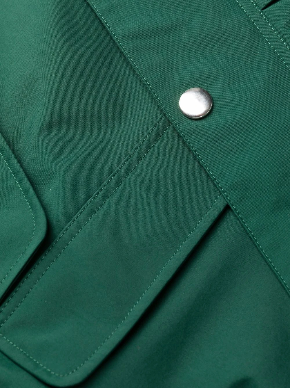Fermeture à zip et boutons sur le devant, revêtement imperméable, capuche classique, poignets boutonnés, ourlet à lien de resserrage, rabat tempête. Couleur : vert.