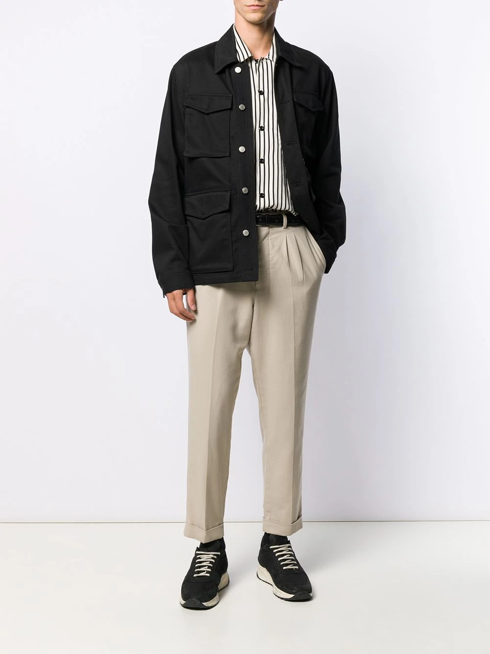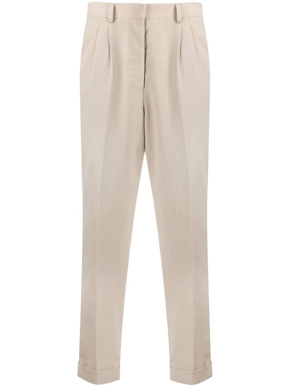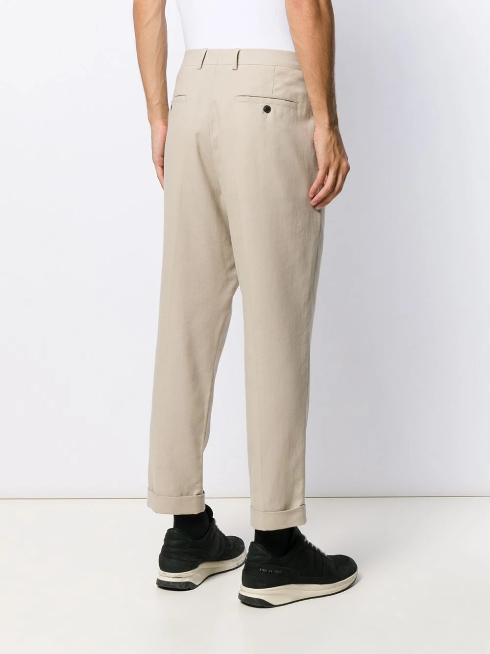 Pantalon droit à design plissé en coton AMI Paris avec taille normale, passants de ceinture, fermeture devant dissimulée, poches latérales fendues, deux poches arrière passepoilées et boutonnées, coupe droite, poignets retroussés et coupe crop.