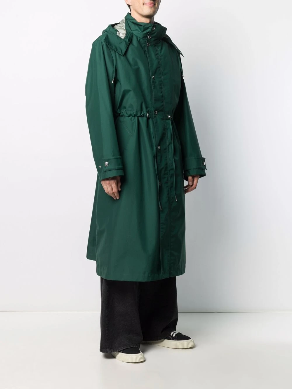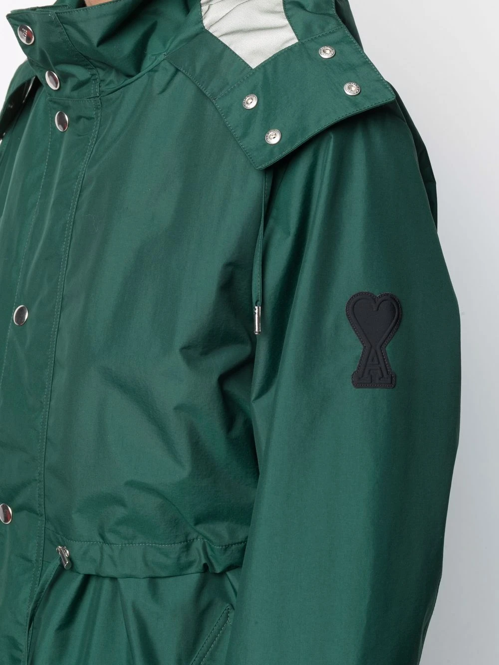 Capuche à lien de resserrage, logo Ami de Coeur signature, taille élastique à lien de resserrage, fermeture zippée et boutons pression sur le devant, poches latérales fendues, manches longues, poignets boutonnés, fente arrière, coupe longue. Couleur : vert. Lorsque vous passez commande, veillez à prendre en compte que les mensurations indiquées pour cet article unisexe correspondent à la taille homme.