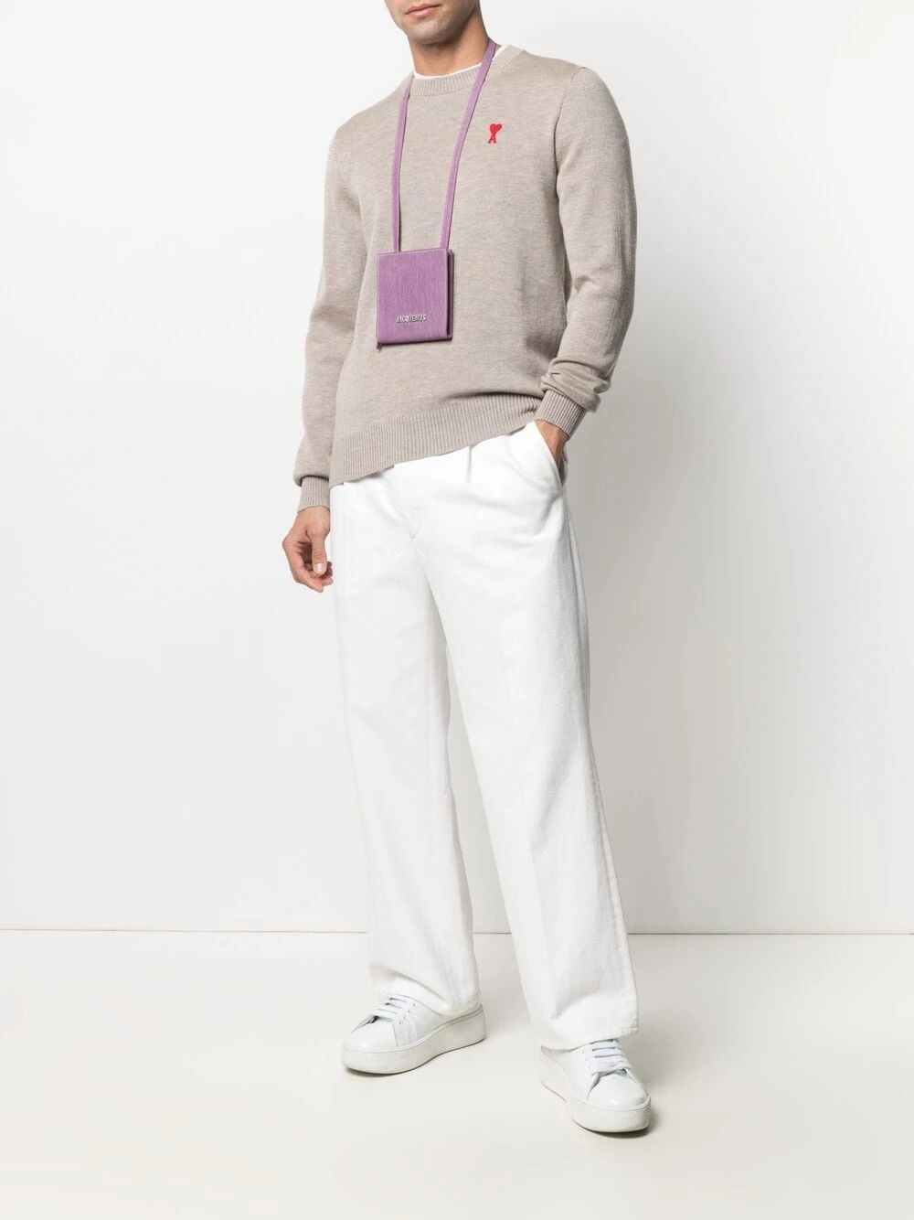 Logo Ami de Coeur signature, maille fine, encolure ras du cou, manches longues, poignets nervurés, ourlet nervuré. Matière : laine mérinos.