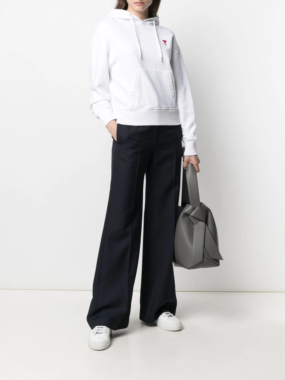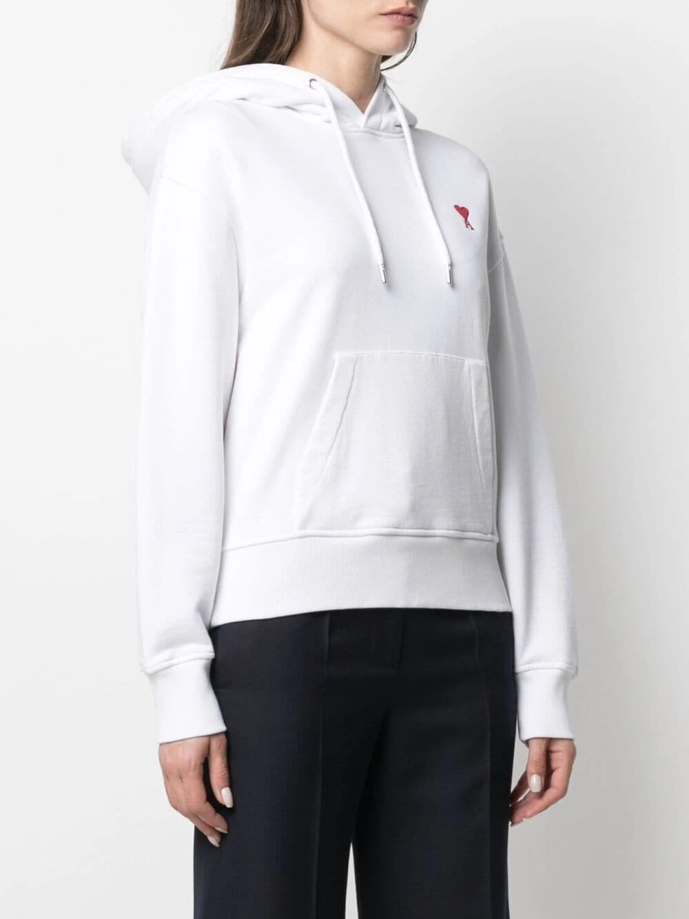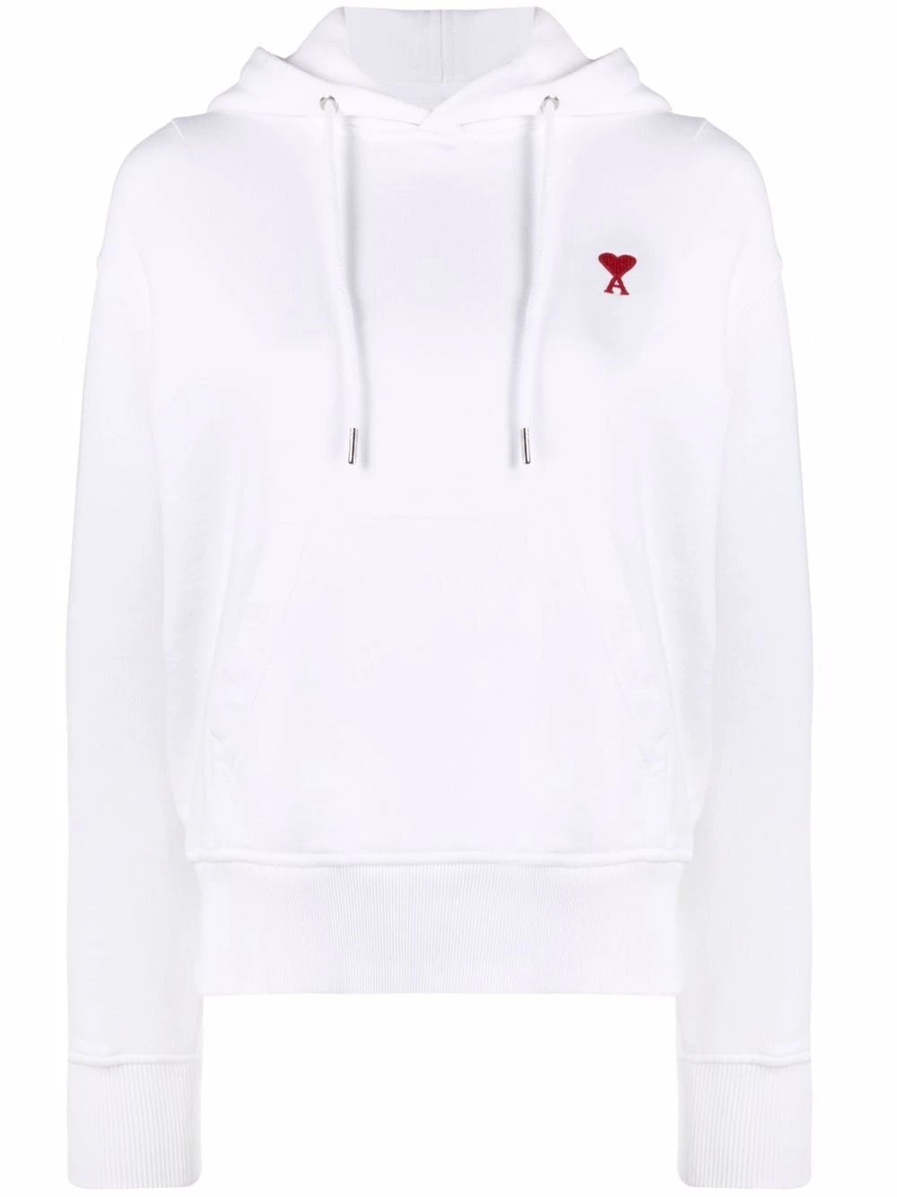 Capuche à lien de resserrage, effet d’épaules descendues, logo Ami de Coeur signature, manches longues, poche plaquée sur le devant. Couleur : blanc.