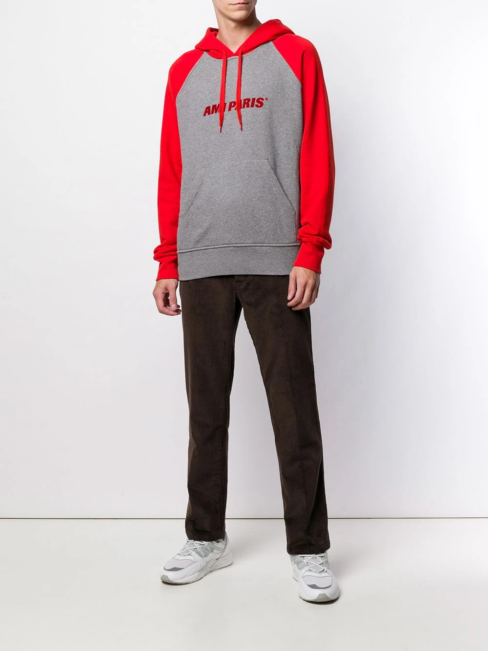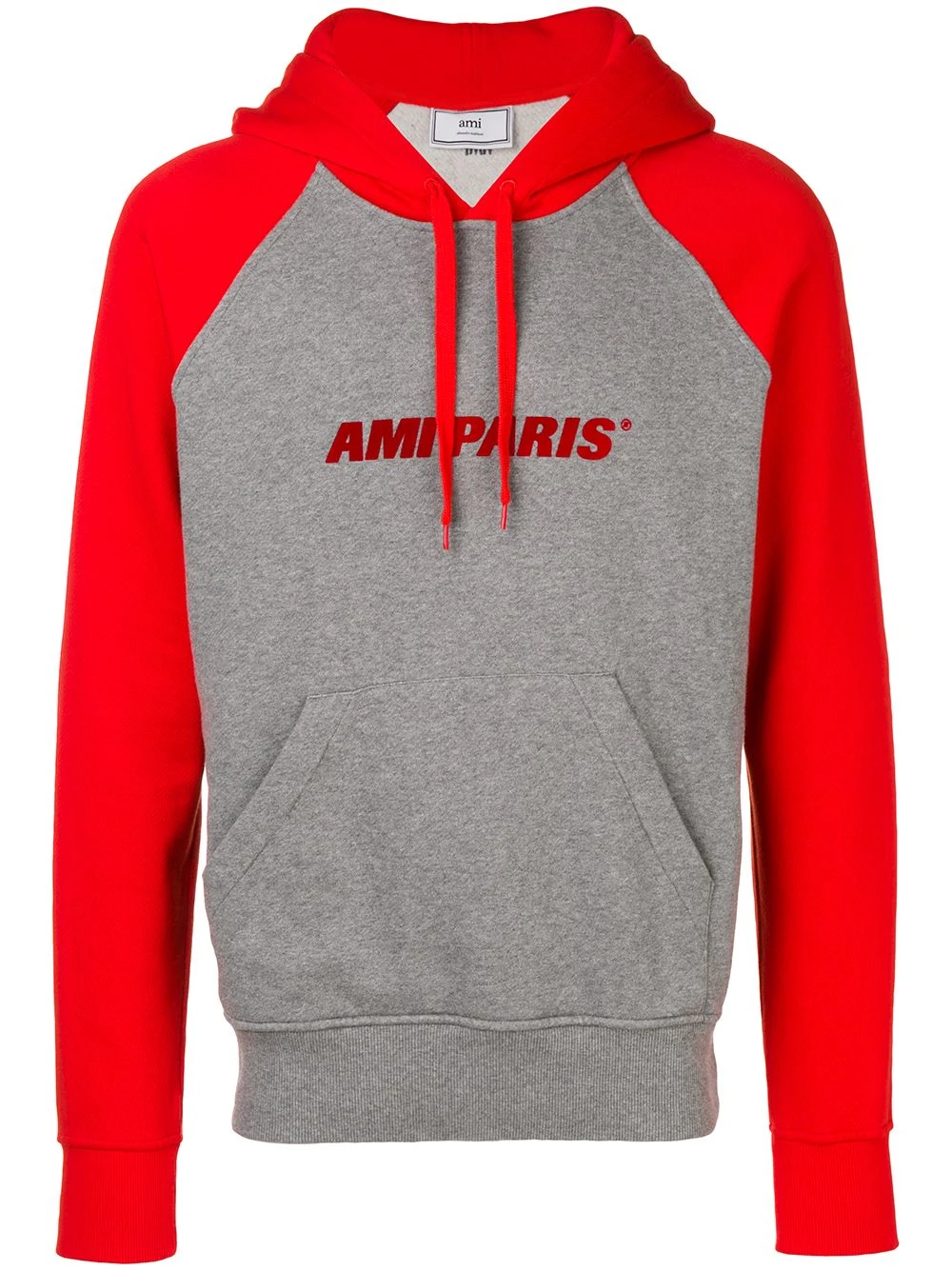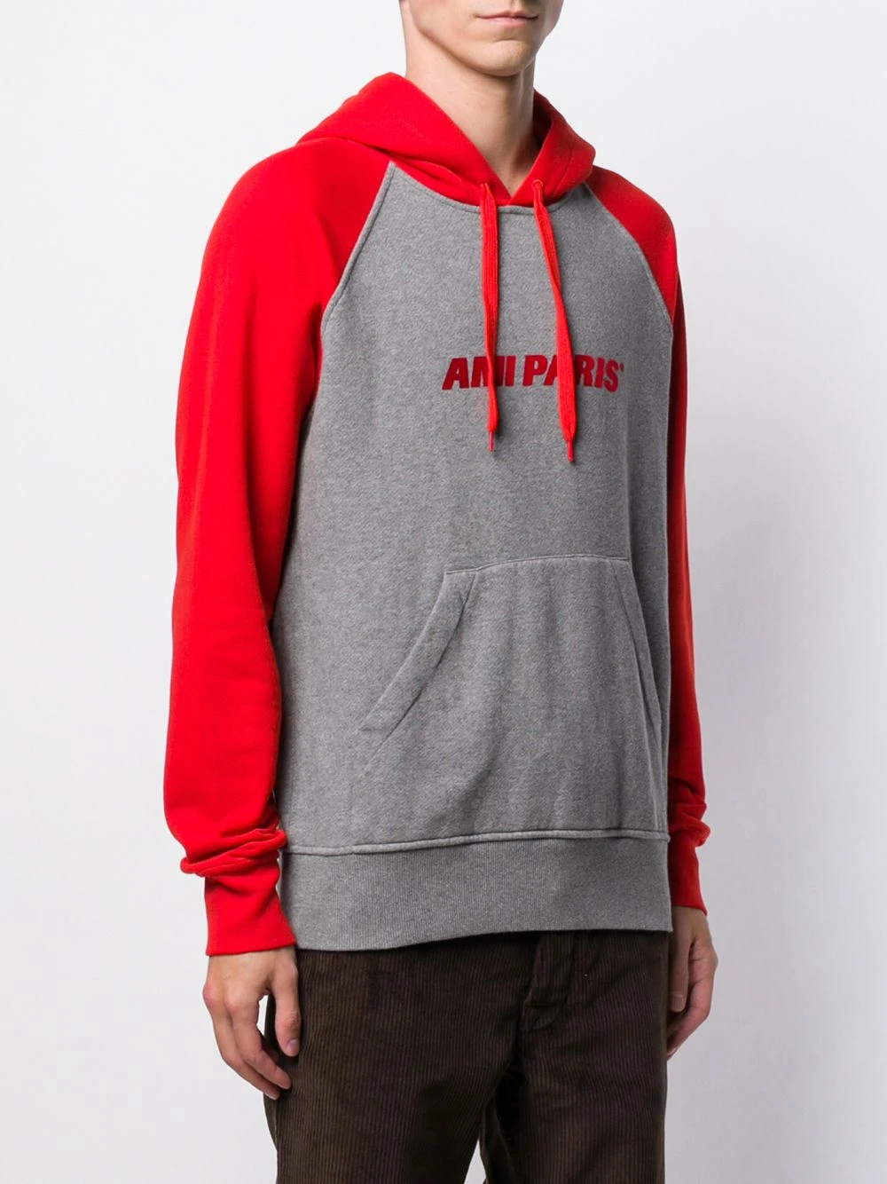 Hoodie ami paris floqué en Natural (Veg)->Cotton AMI Alexandre Mattiussi. Couleur: Grey and red.