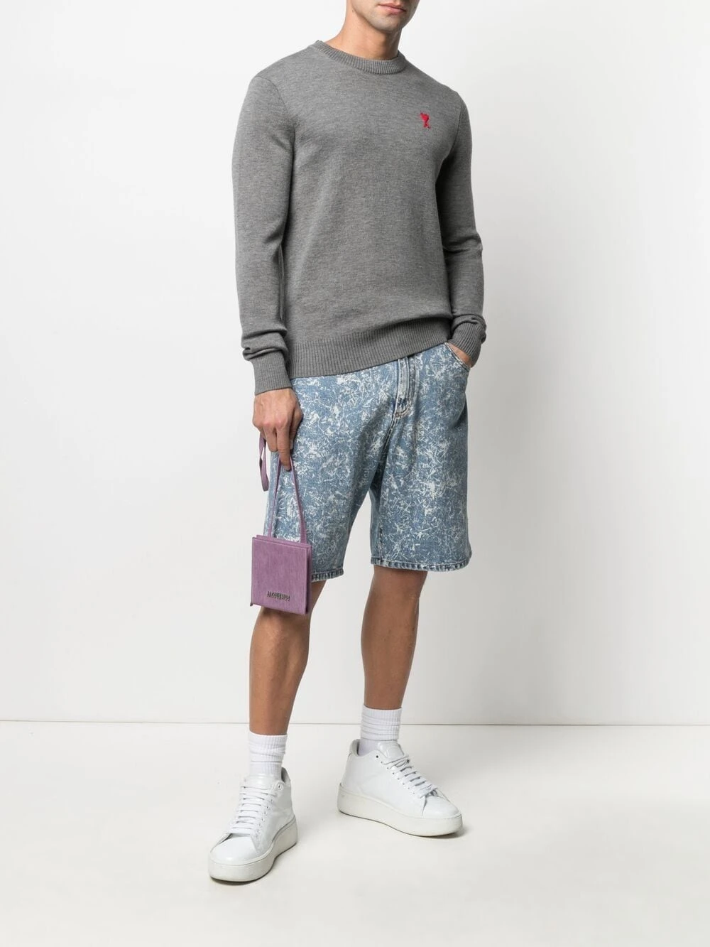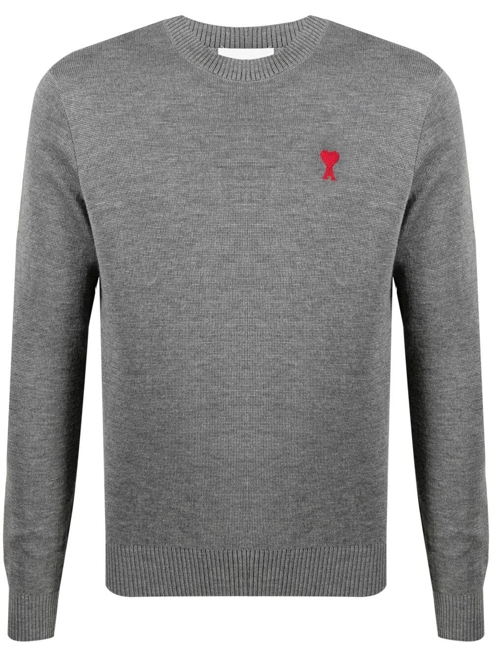 Logo Ami de Coeur signature, maille fine, encolure ras du cou, manches longues, poignets nervurés, ourlet nervuré. Couleur : gris. Matière : laine mérinos.