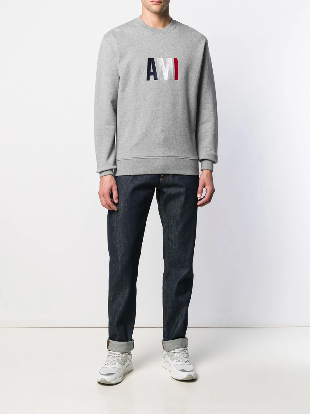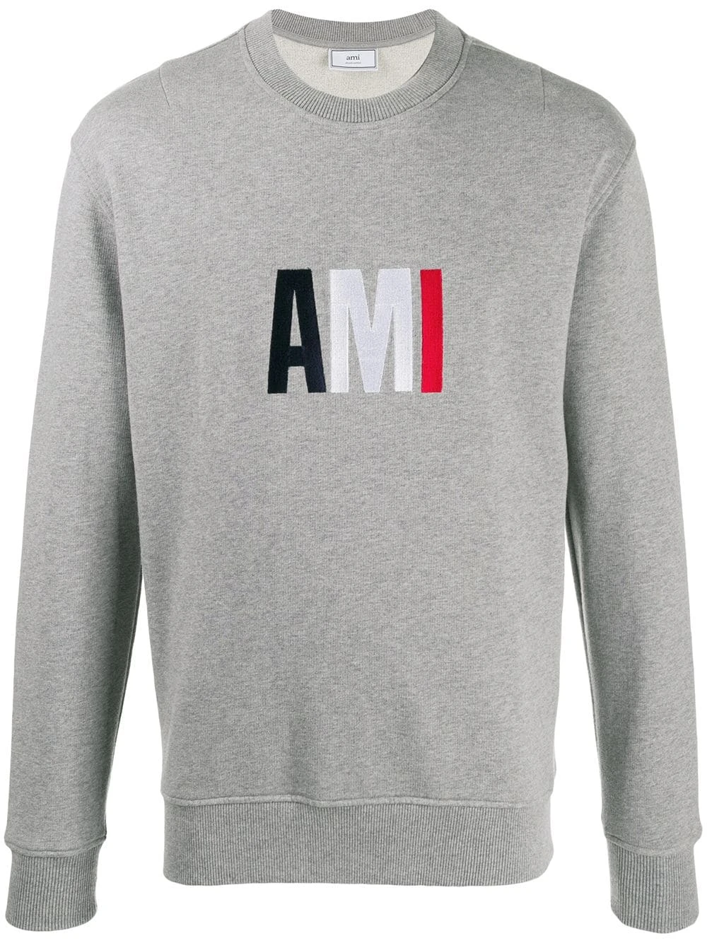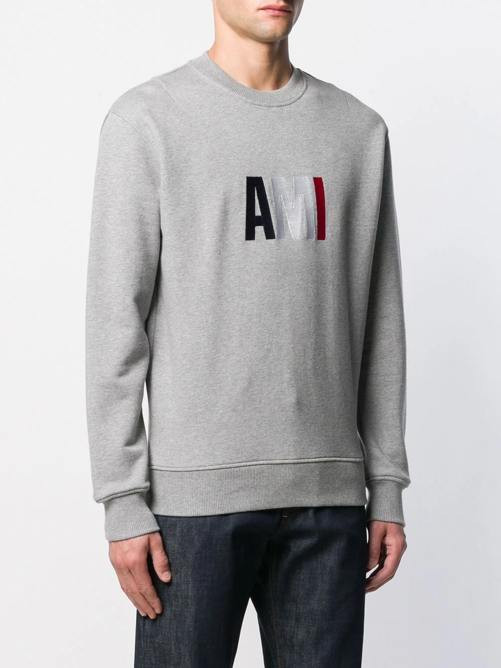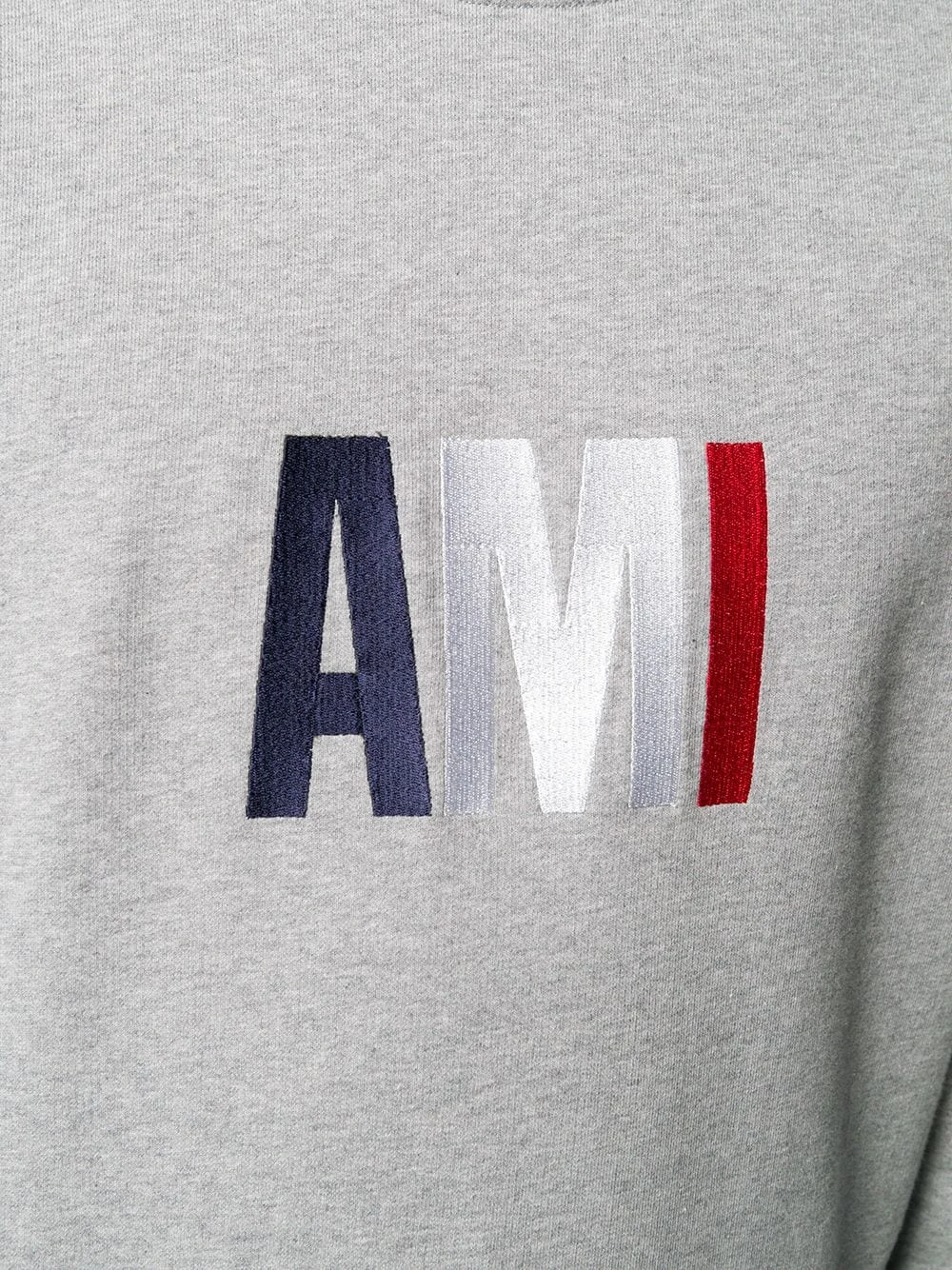 Sweat à logo en matériaux naturels (végétal)->coton AMI Paris avec logo brodé sur le devant, bordure nervurée et encolure ras du cou.