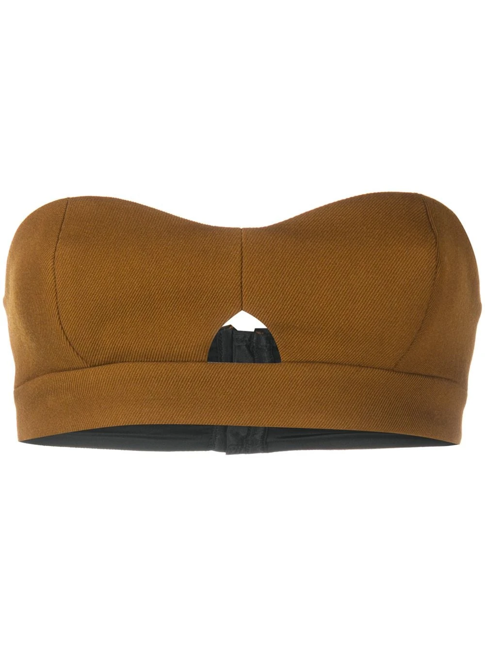 Empiècements contrastants, encolure cœur, col à ouverture goutte d’eau, design sans manches, fermeture à loquet.