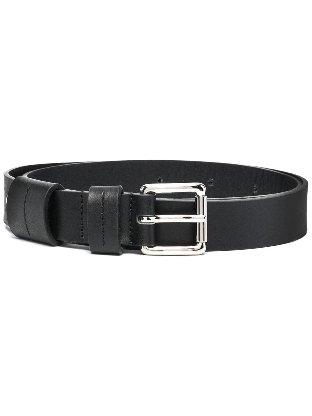 Branches droites, détails de perforation, fermeture à boucle, taille ajustable. Couleur : noir. Matière : cuir.