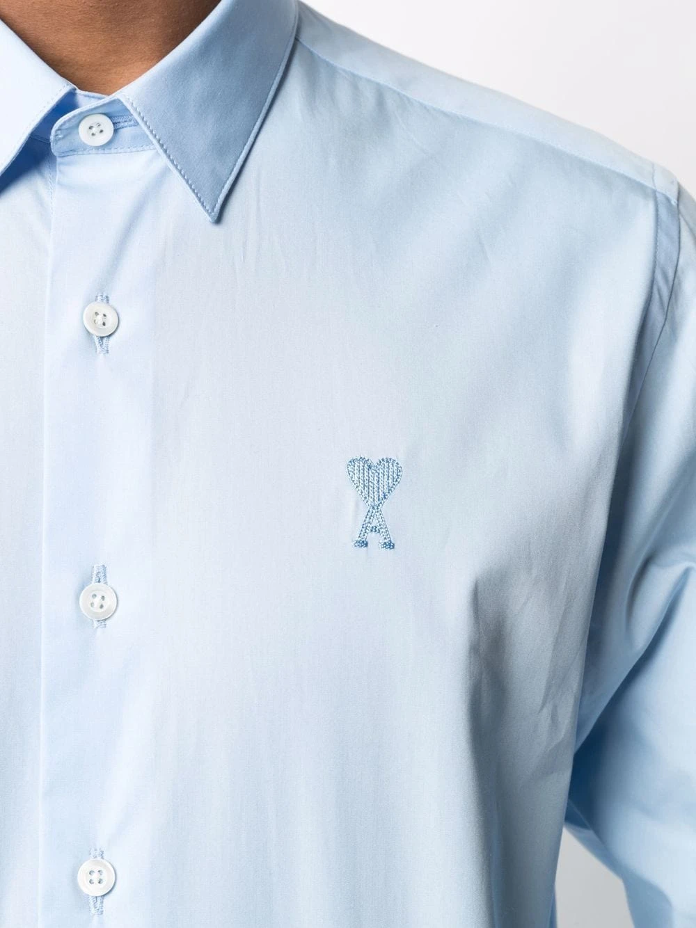 Col classique, boutonnière sur le devant, logo Ami de Coeur signature, manches longues, poignets boutonnés, ourlet incurvé. Matière : coton.
