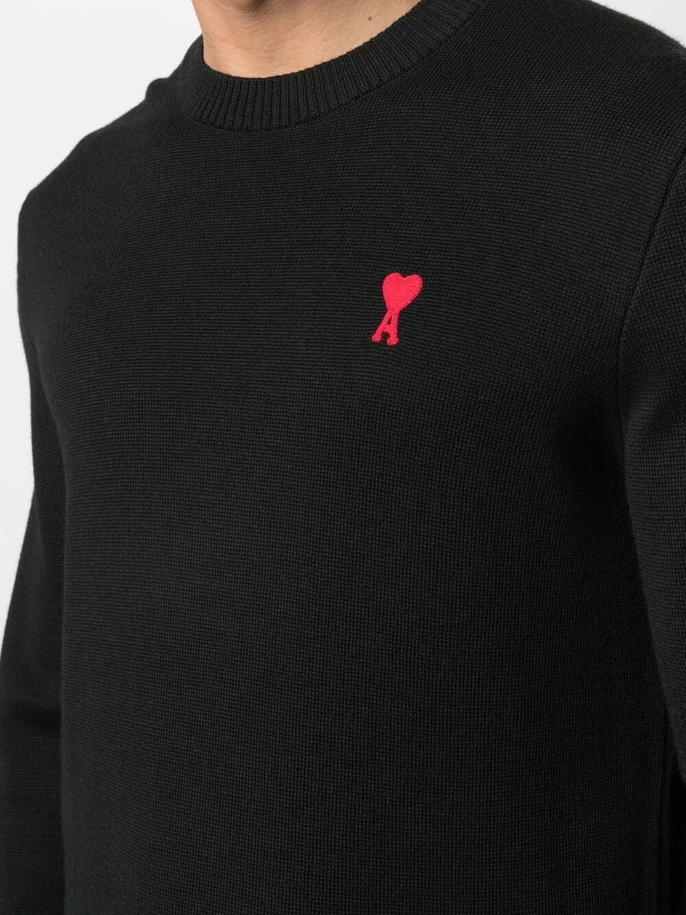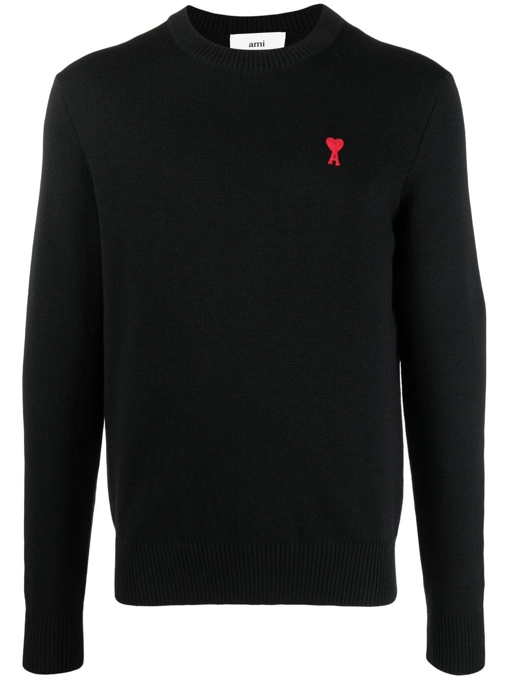 Pull Ami de Coeur en mérinos AMI Paris avec encolure ras du cou, manches longues et ourlet et poignets nervurés. Couleur : noir.