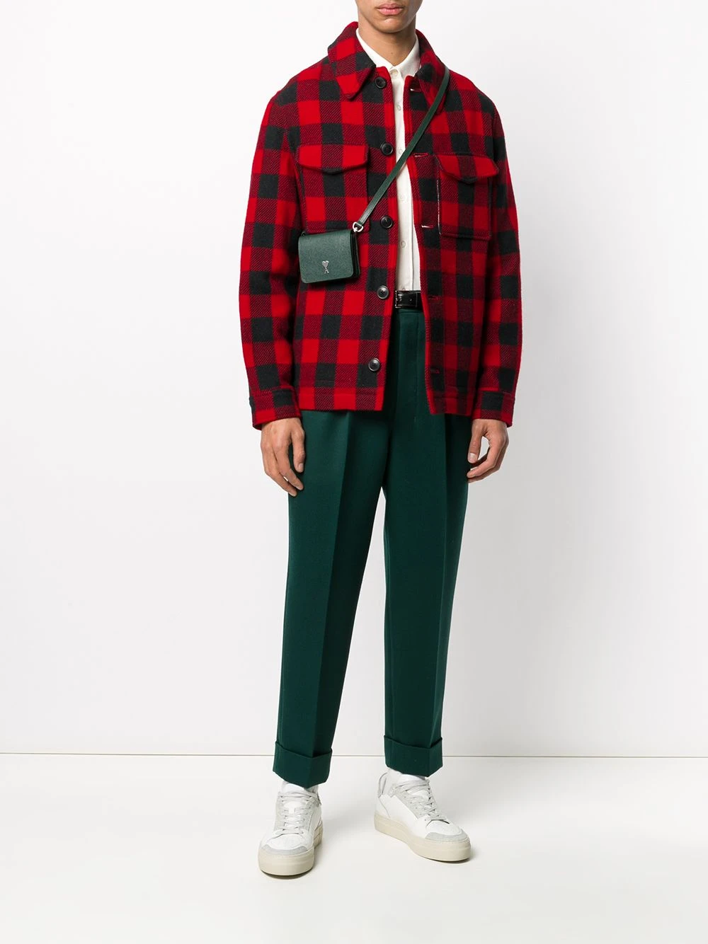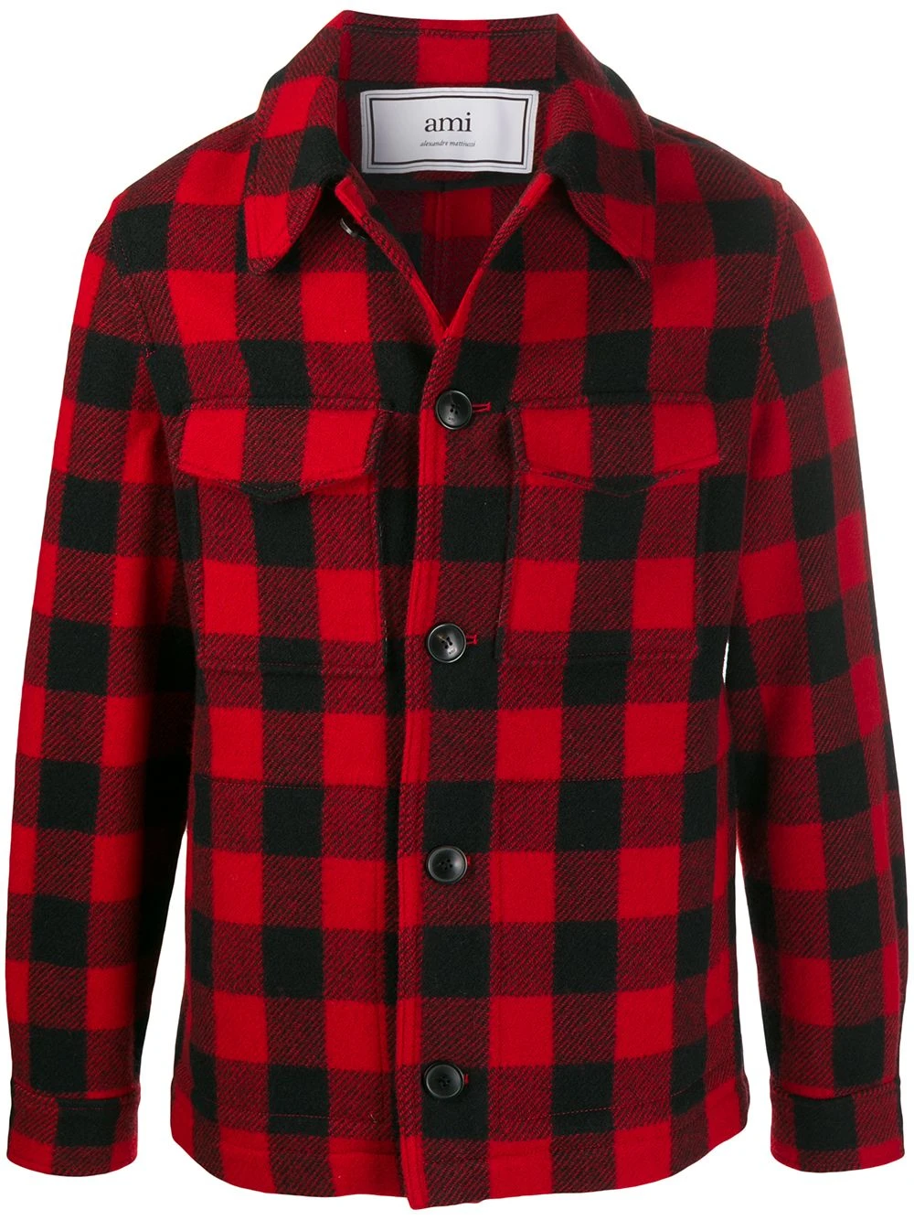 Veste boutonnée à carreaux en laine AMI Paris avec imprimé à carreaux, col classique, manches longues, attache boutonnée et poches devant à rabat.