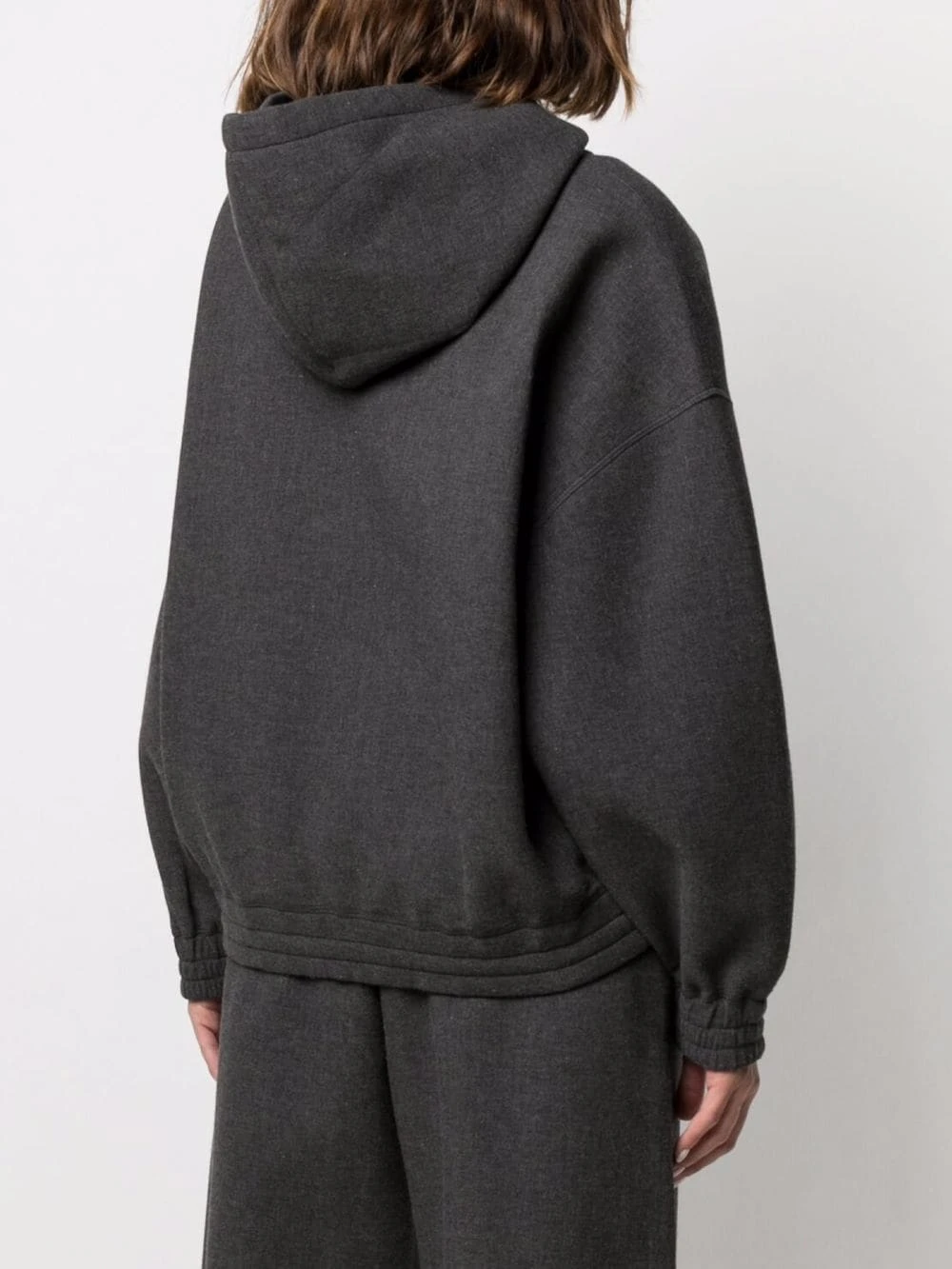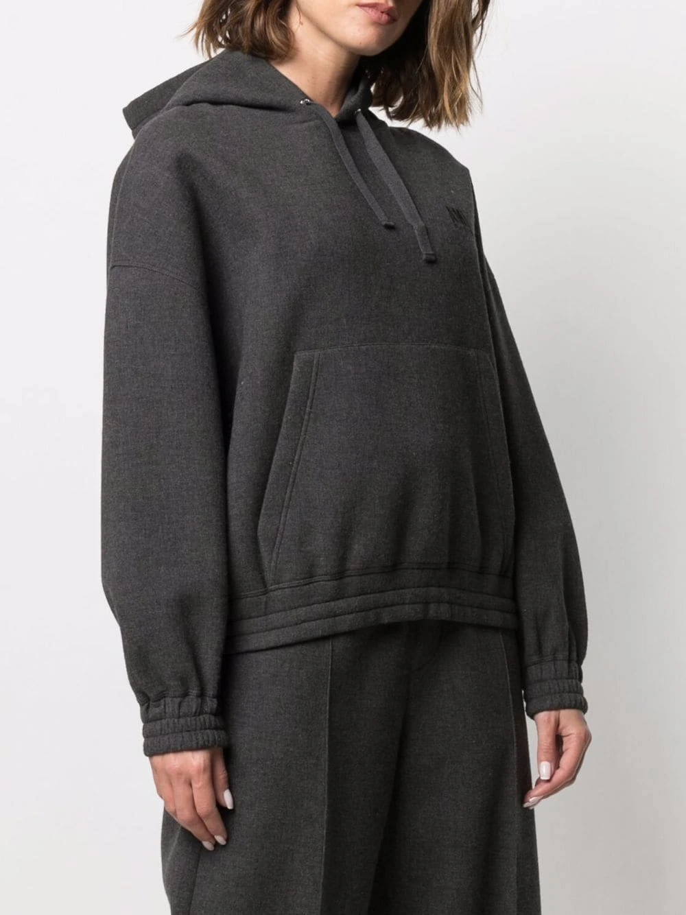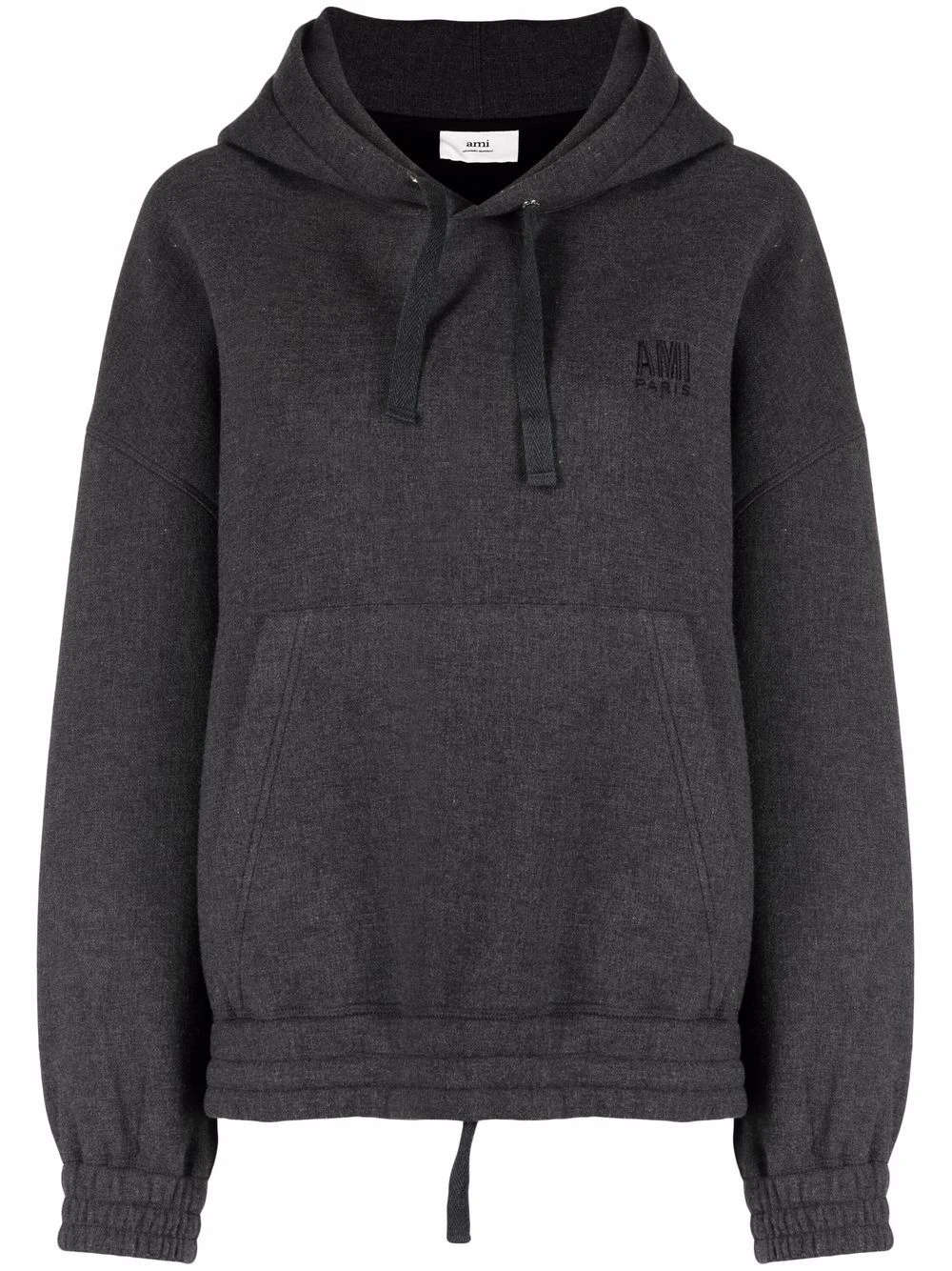 Capuche à lien de resserrage, logo brodé sur la poitrine, poche plaquée sur le devant, poignets élastiqués, ourlet élastiqué. Couleur : gris.