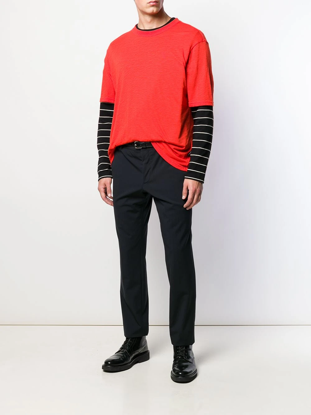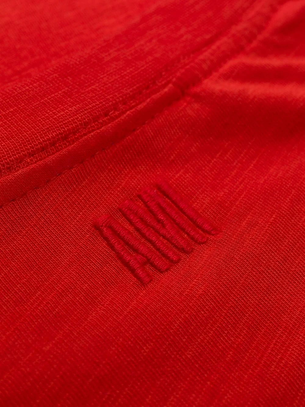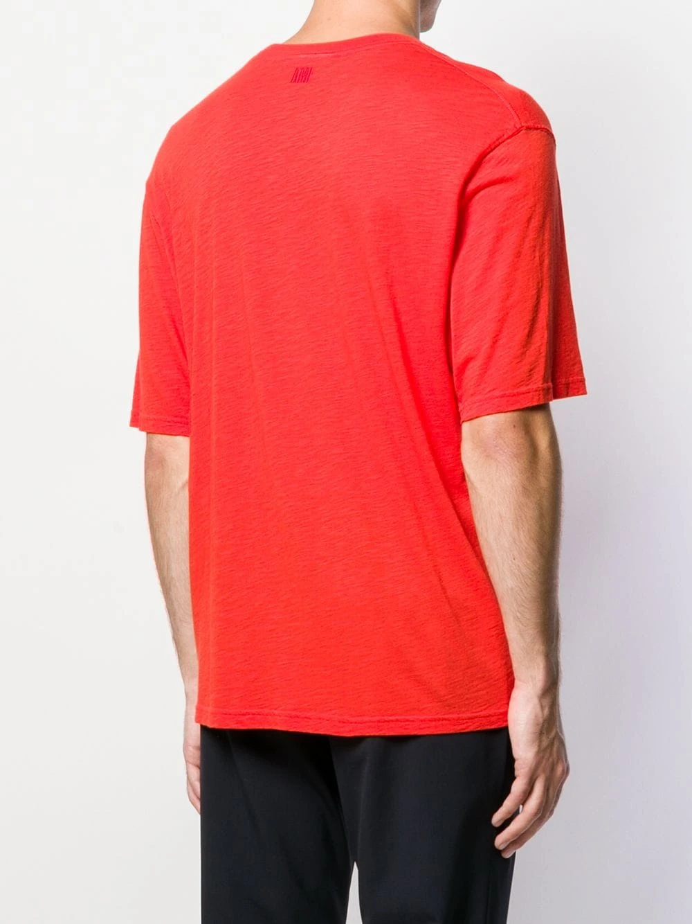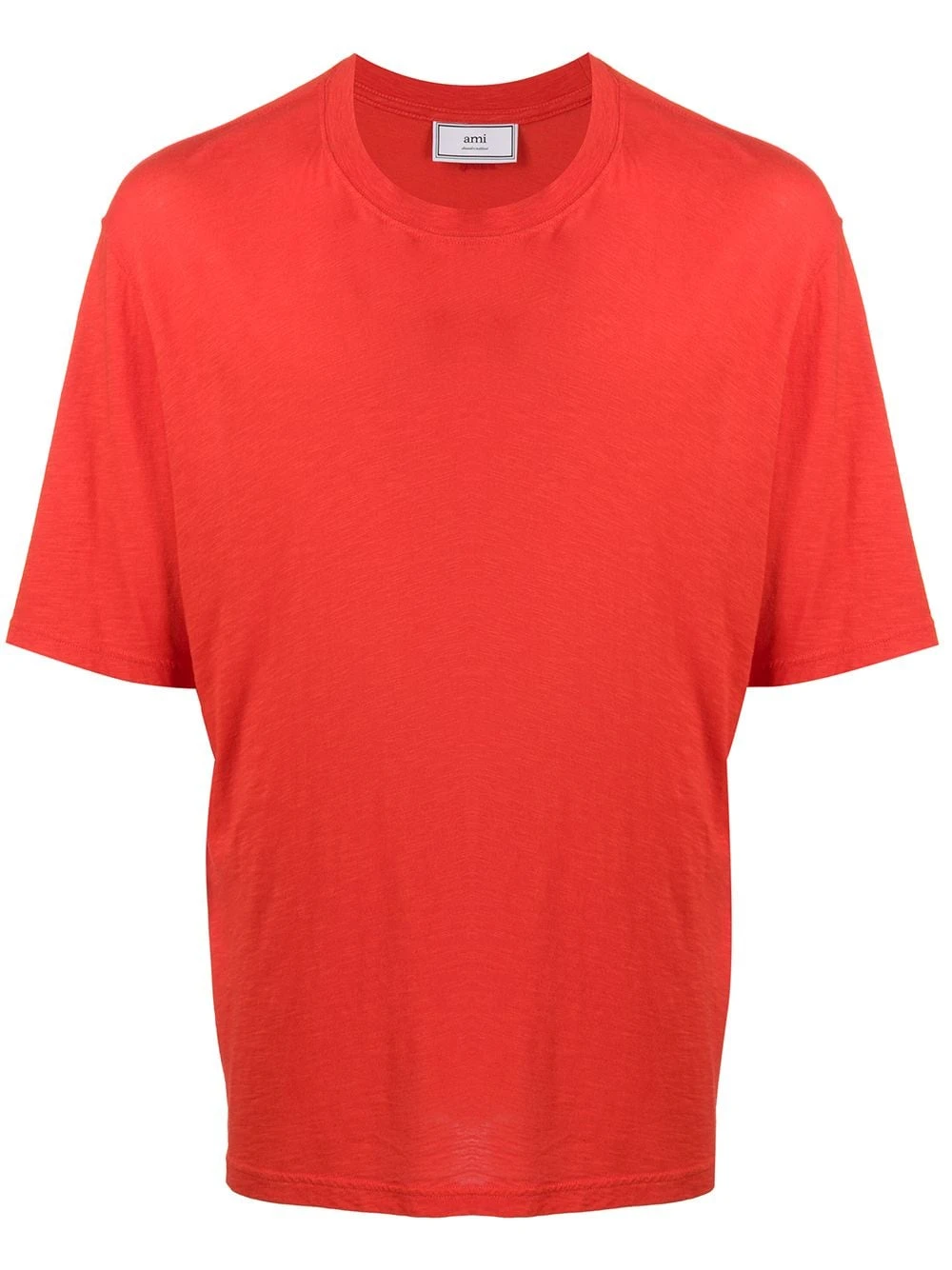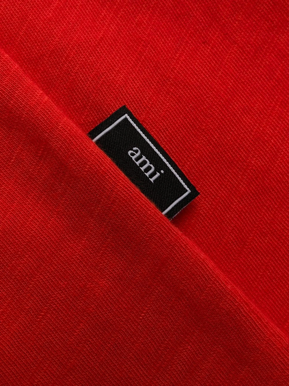 T-shirt à logo en coton mélangé AMI Paris avec encolure ronde nervurée, manches courtes et effet d’épaules descendues. Couleur : rouge.