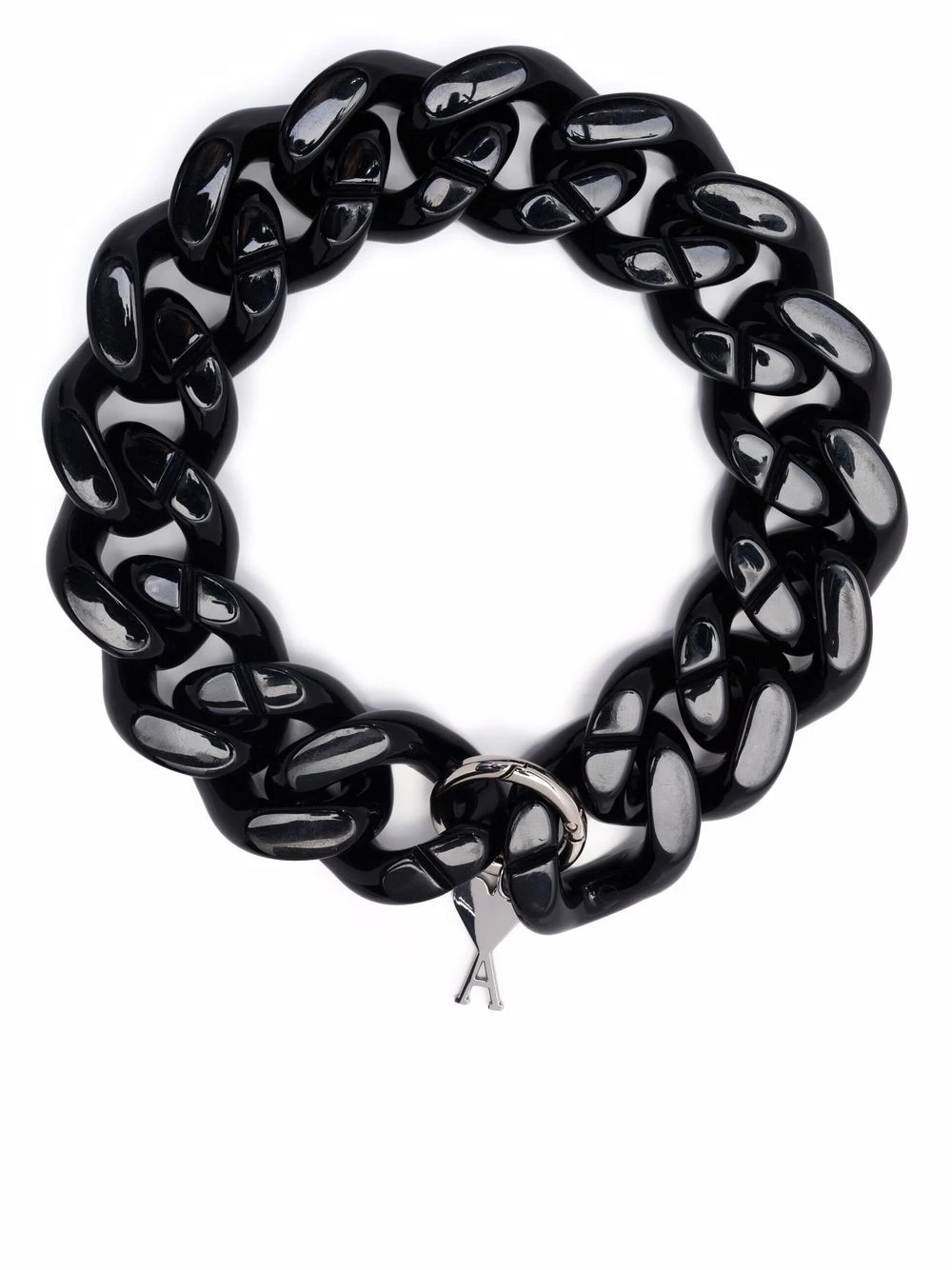 Ornements argentés, logo Ami de Coeur signature, chaîne pendante, fermeture à loquet. Couleur : noir.