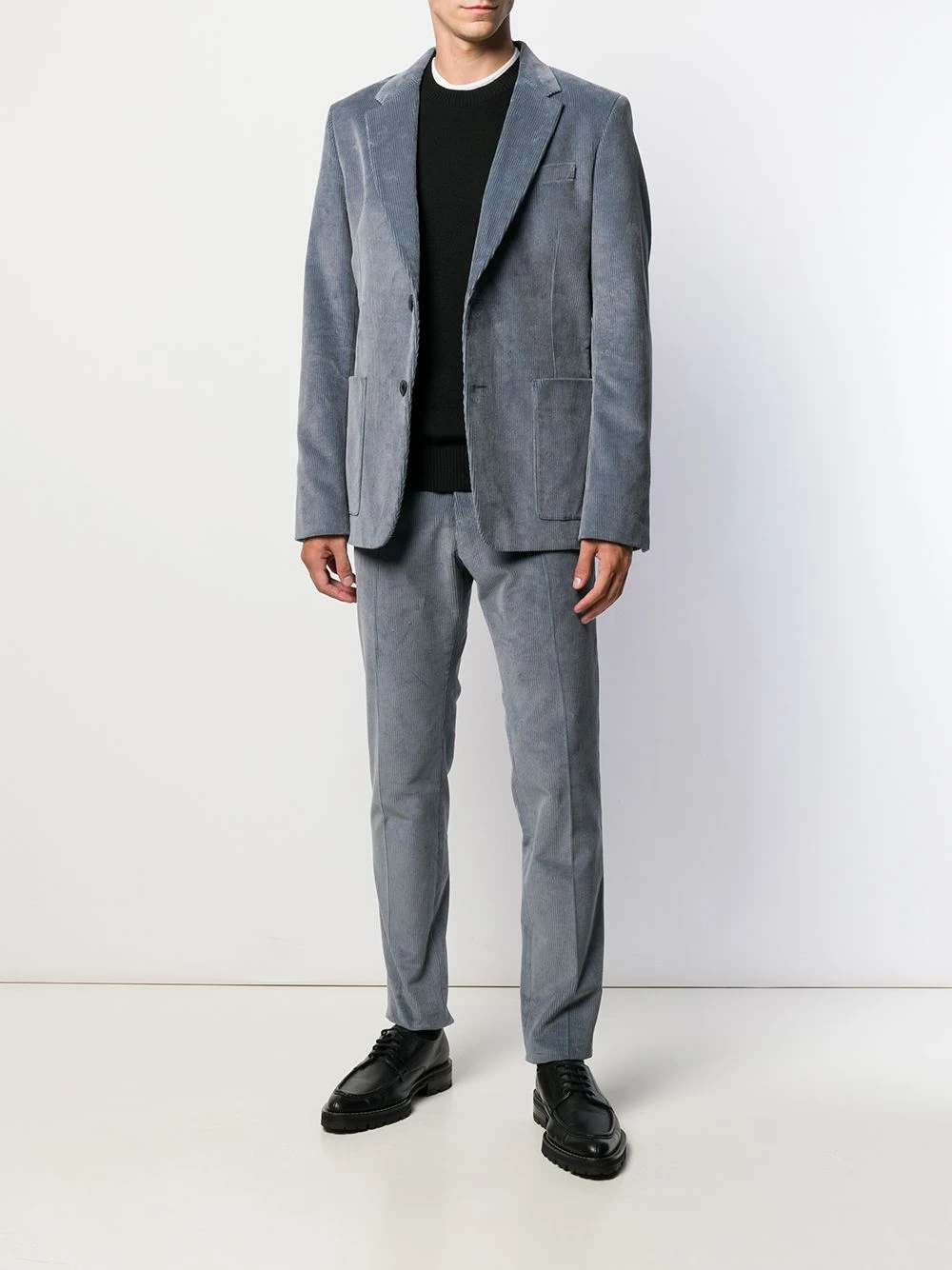 Veste deux boutons en coton AMI Alexandre Mattiussi avec design nervuré, revers crantés, boutonnière sur le devant, poches devant, manches longues et poignets boutonnés.