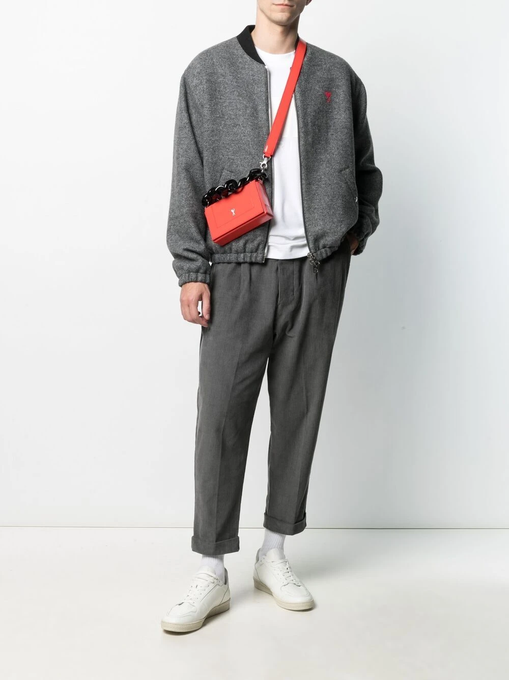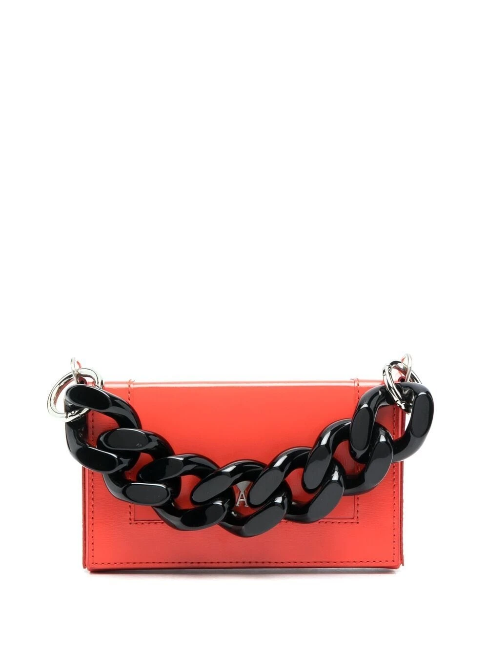 Logo Ami de Coeur signature, anse à maillons de chaîne, bride porté épaule détachable, rabat sur le dessus à fermeture magnétique, compartiment principal, logo imprimé à l’intérieur, ornements argentés. Matière : cuir.