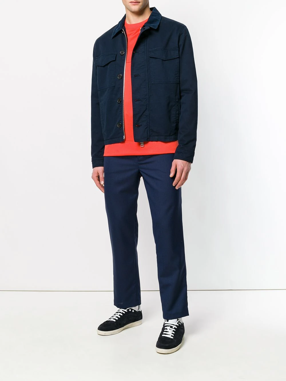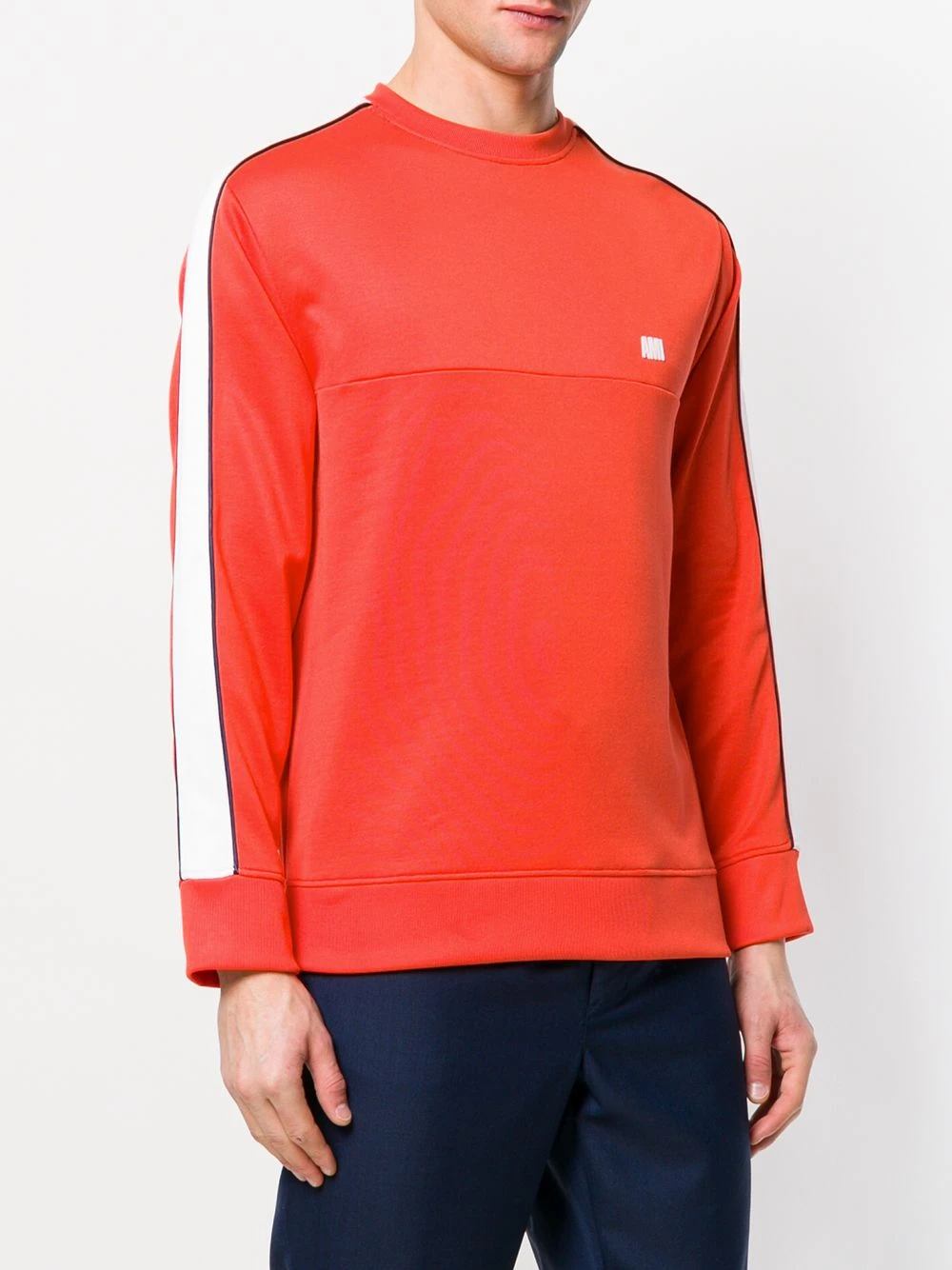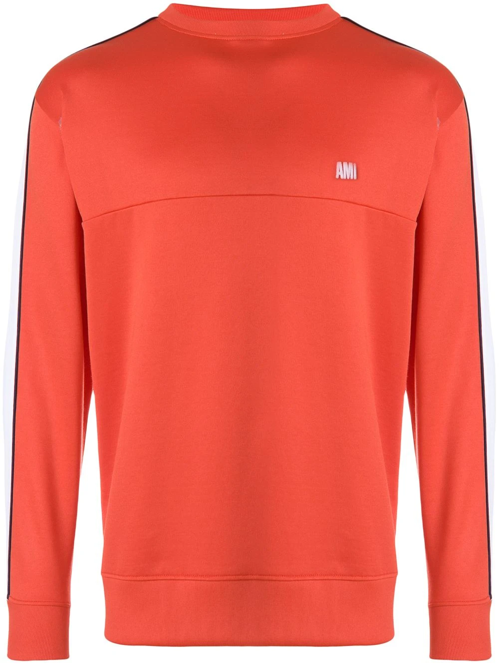 Sweatshirt col rond bicolore en coton stretch rouge Ami Alexandre Mattiussi avec encolure ronde, manches longues, forme détendue et motif de rayures.