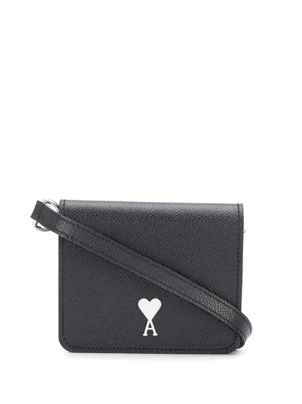 Plaque logo, ornements argentés, bride portée épaule détachable et ajustable, rabat sur le devant, fermeture magnétique. Couleur : noir. Matière : cuir.