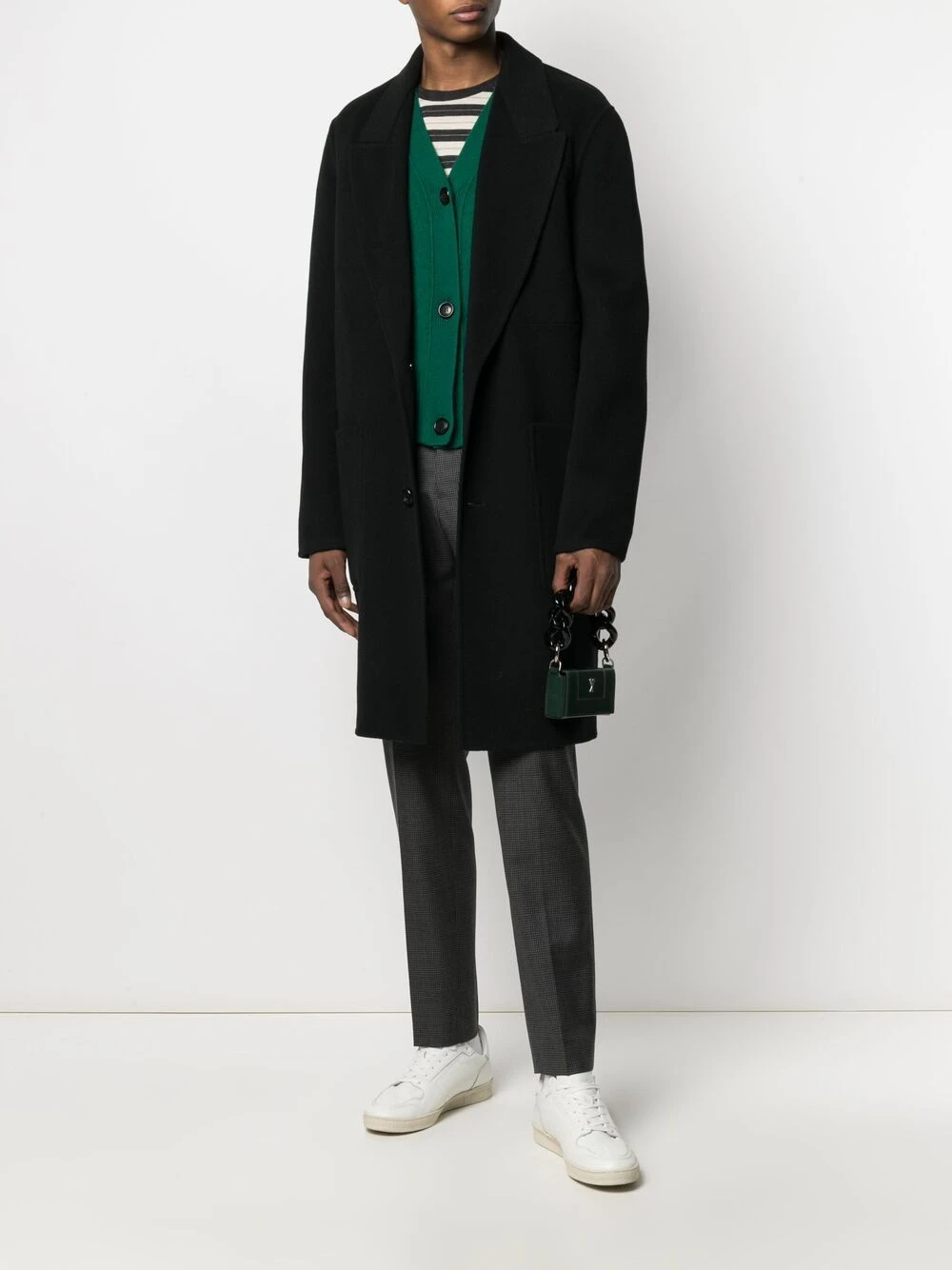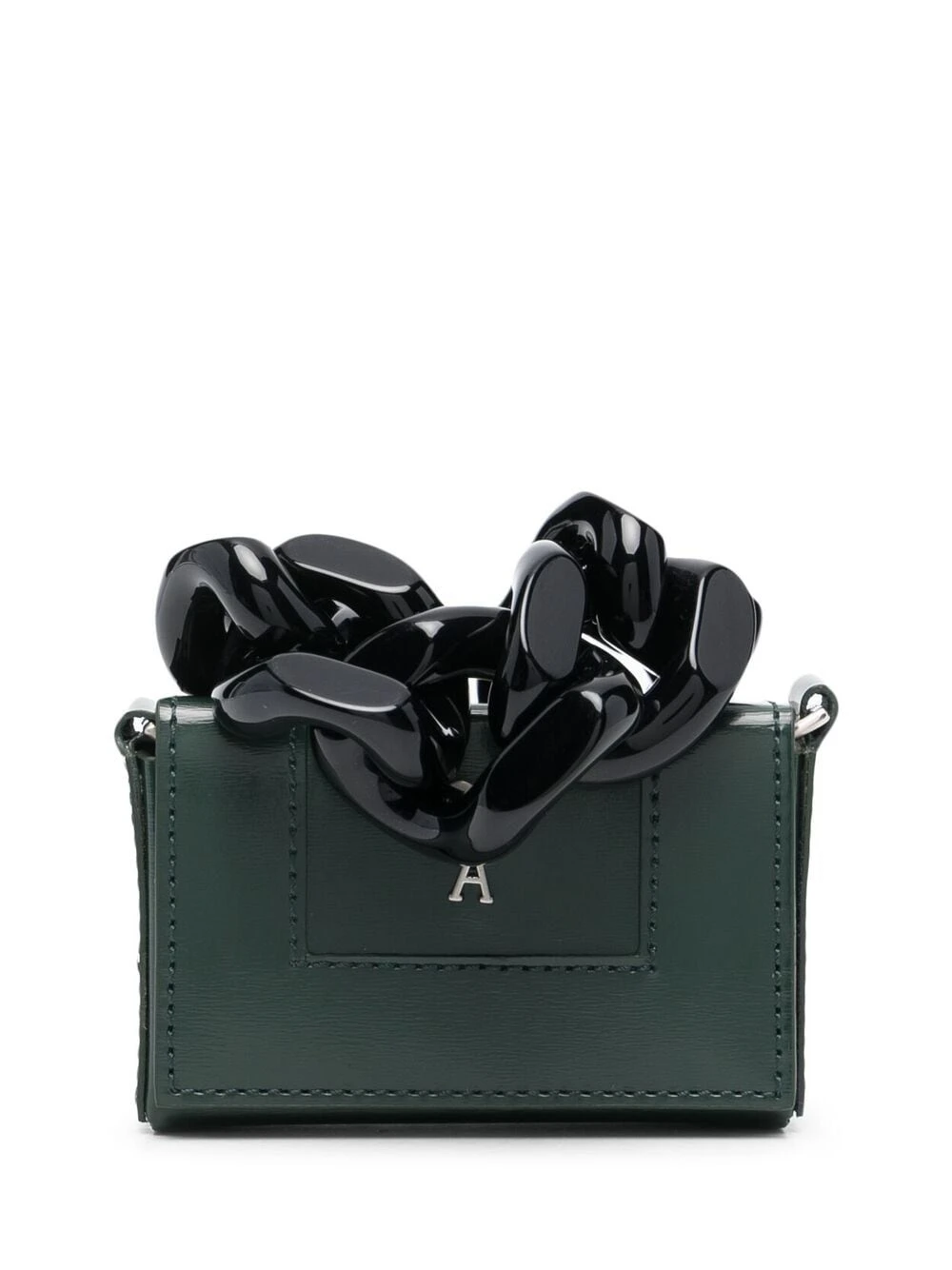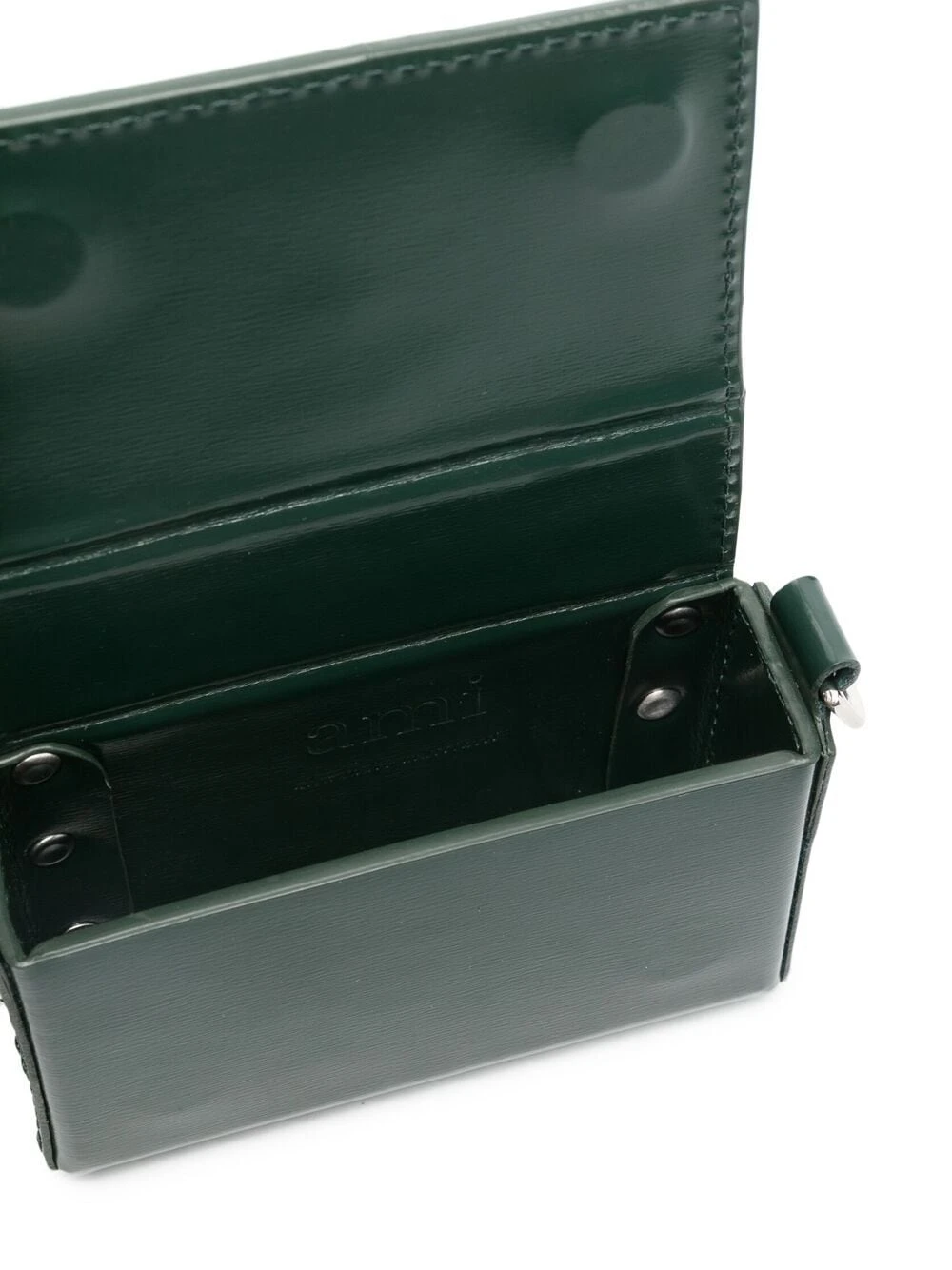 Ornements argentés, étoiles métalliques, rabat sur le dessus à fermeture magnétique, compartiment principal. Couleur : vert. Matière : peau de chèvre.