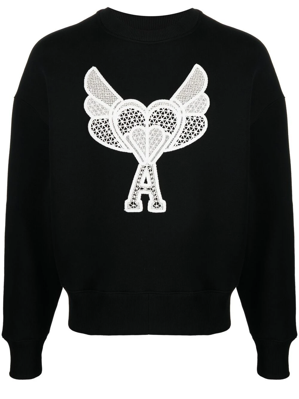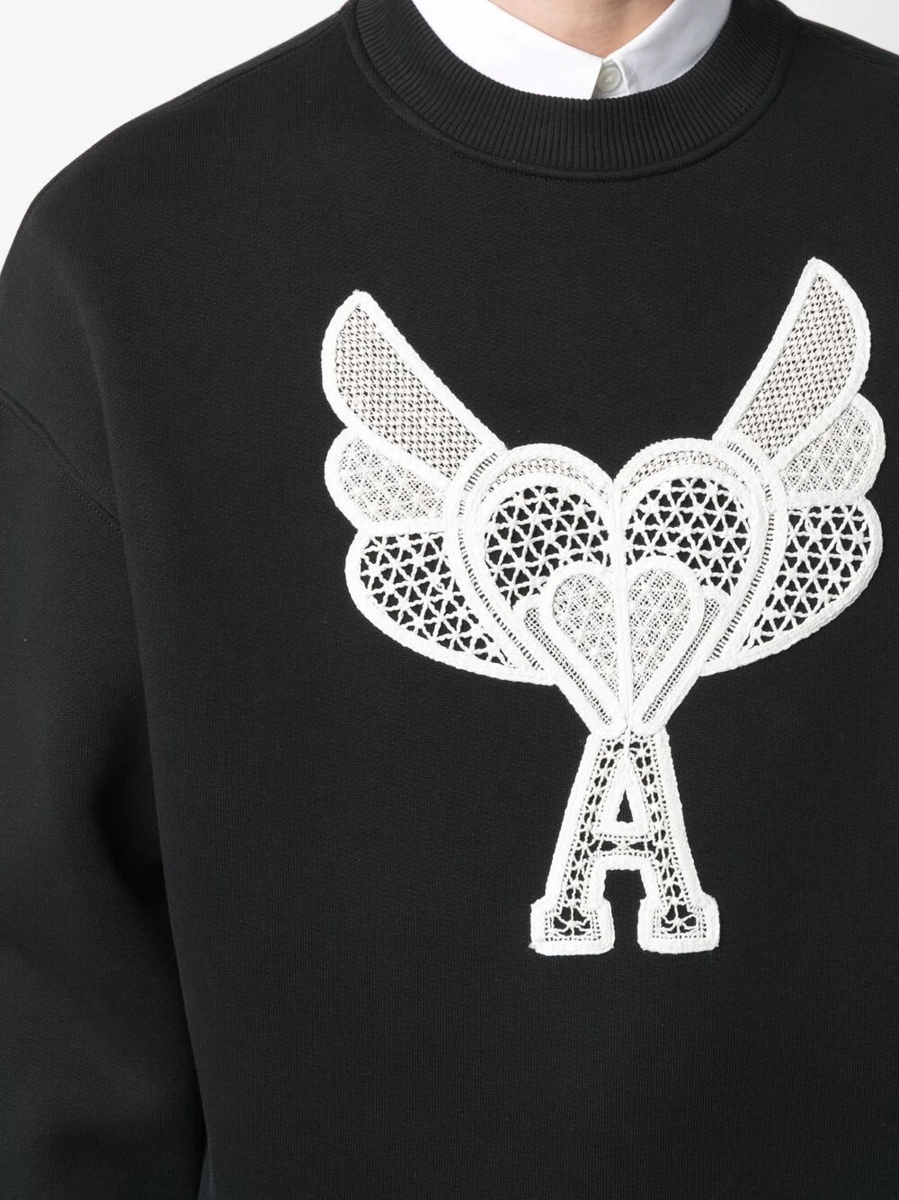 Logo Ami de Coeur signature, encolure ras du cou, effet d’épaules descendues, manches longues, ourlet nervuré, ourlet nervuré. Couleur : noir.