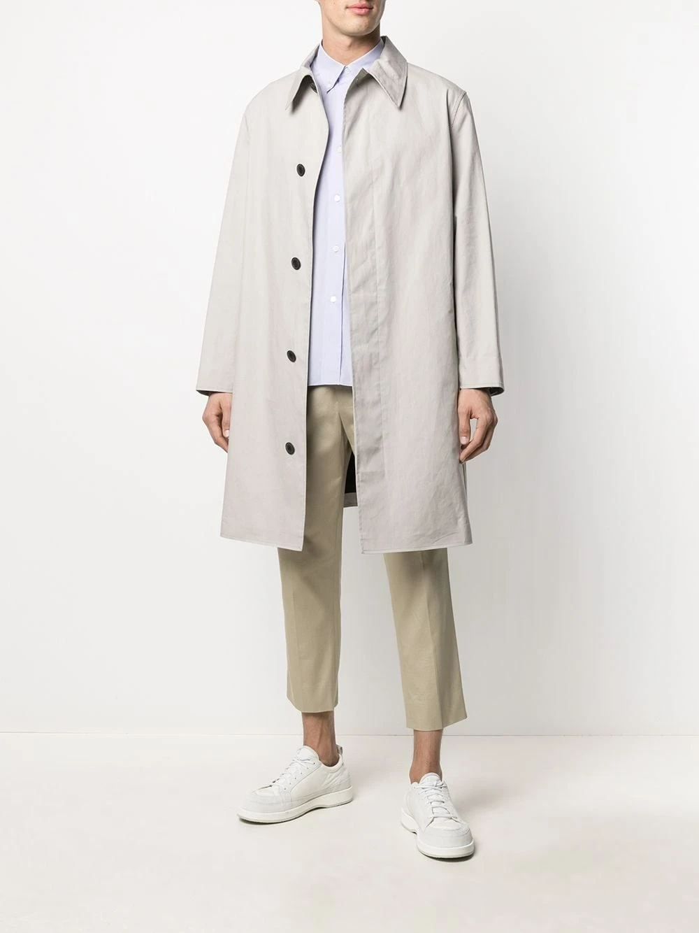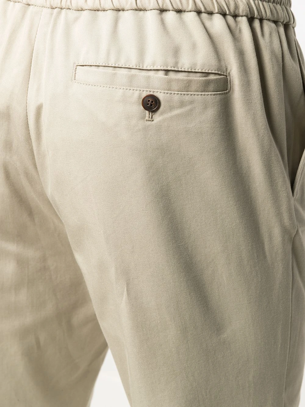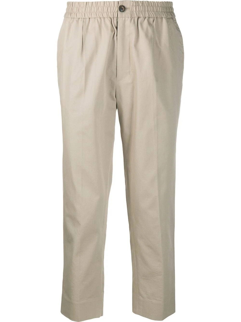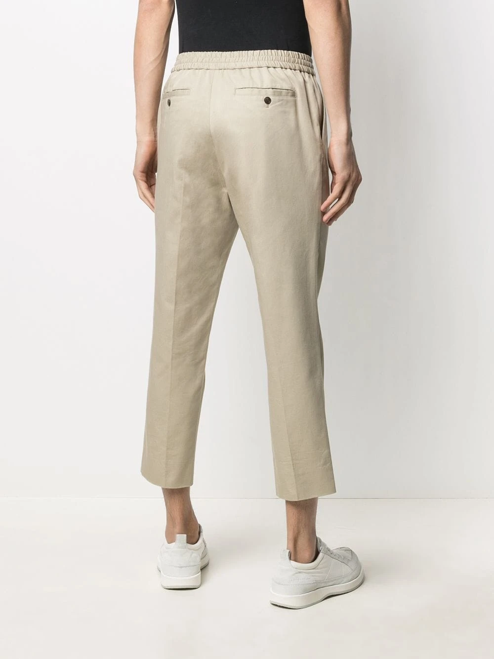 Pantalon court à taille élastique en coton AMI Paris avec ceinture élastique, boutonnière sur le devant, poches latérales fendues, deux poches passepoilées boutonnées au dos et coupe crop.