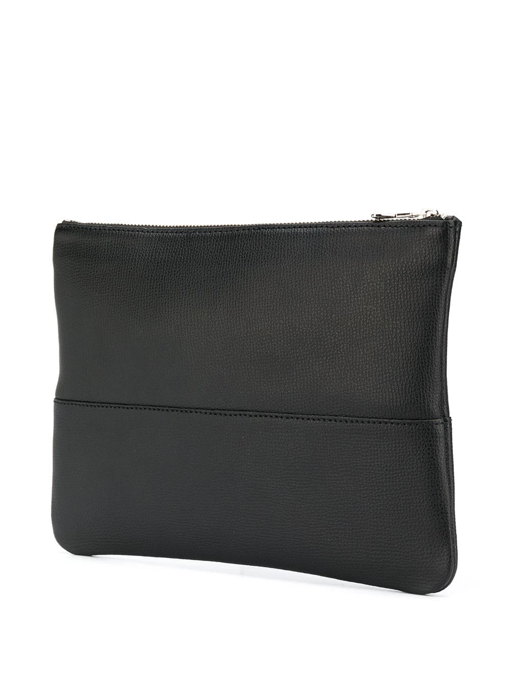 Détail embossé, fermeture zippée sur le dessus, ornements argentés. Couleur : noir. Matière : Cuir de veau.