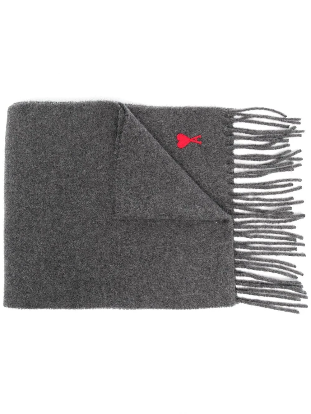 Coupe longue, bordure à franges. Couleur : gris. Matière : laine.
