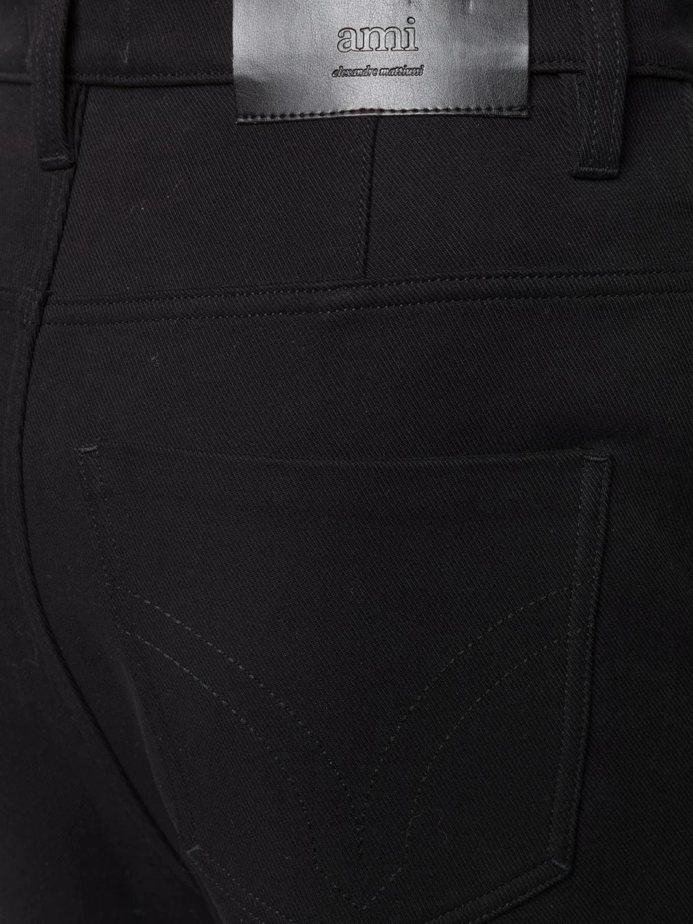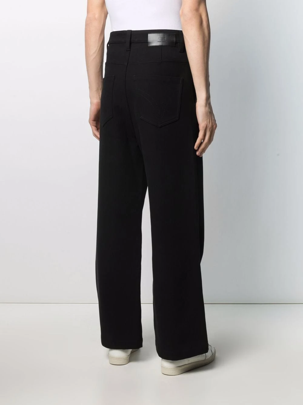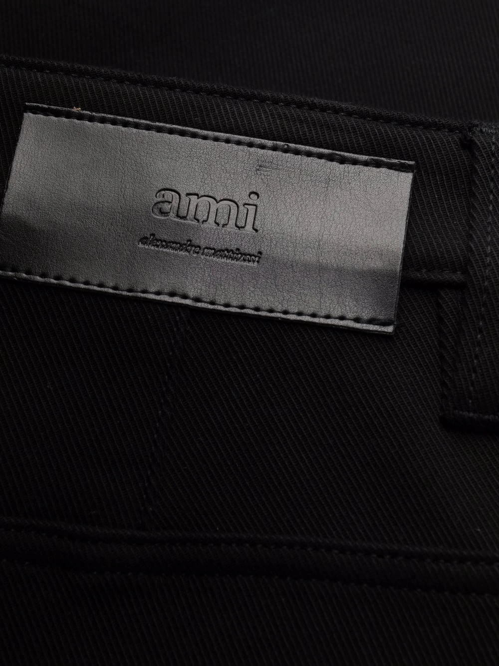 Patch logo sur l’arrière, passants de ceinture, fermeture à zip et boutons sur le devant, coupe ample, poches latérales fendues, poches arrière plaquées. Couleur : noir. Matière : coton.