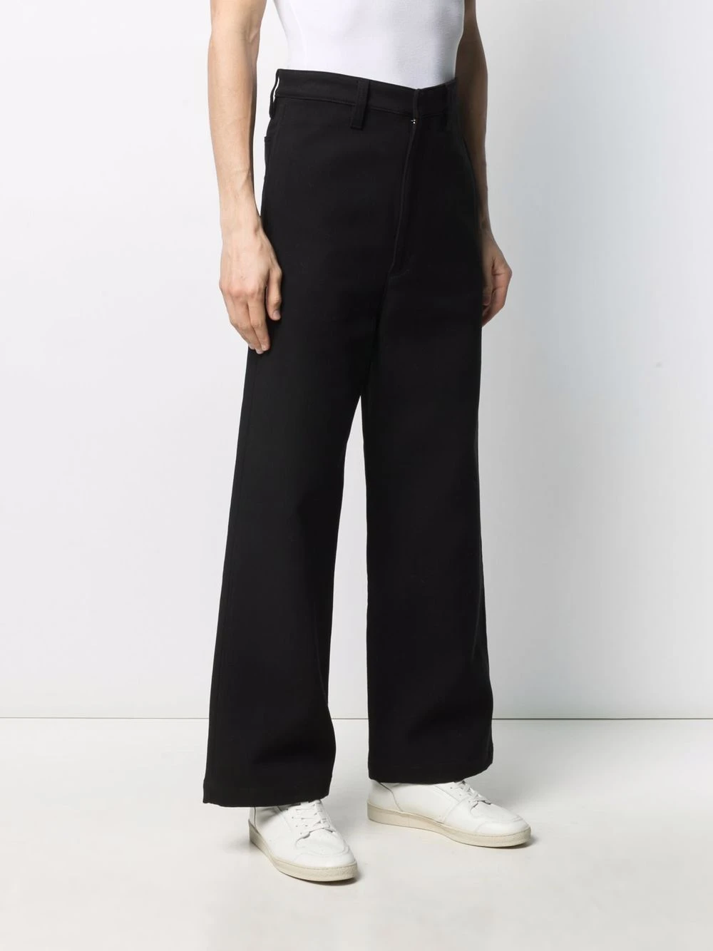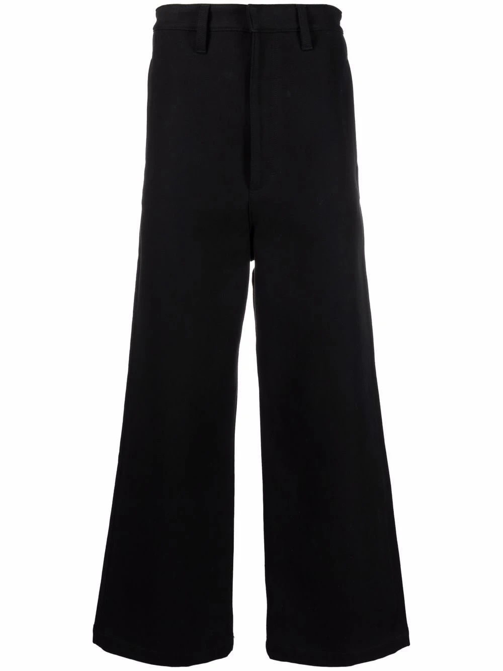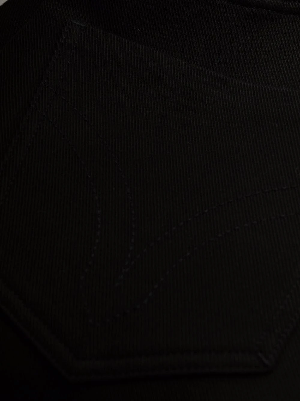 Patch logo sur l’arrière, passants de ceinture, fermeture à zip et boutons sur le devant, coupe ample, poches latérales fendues, poches arrière plaquées. Couleur : noir. Matière : coton.