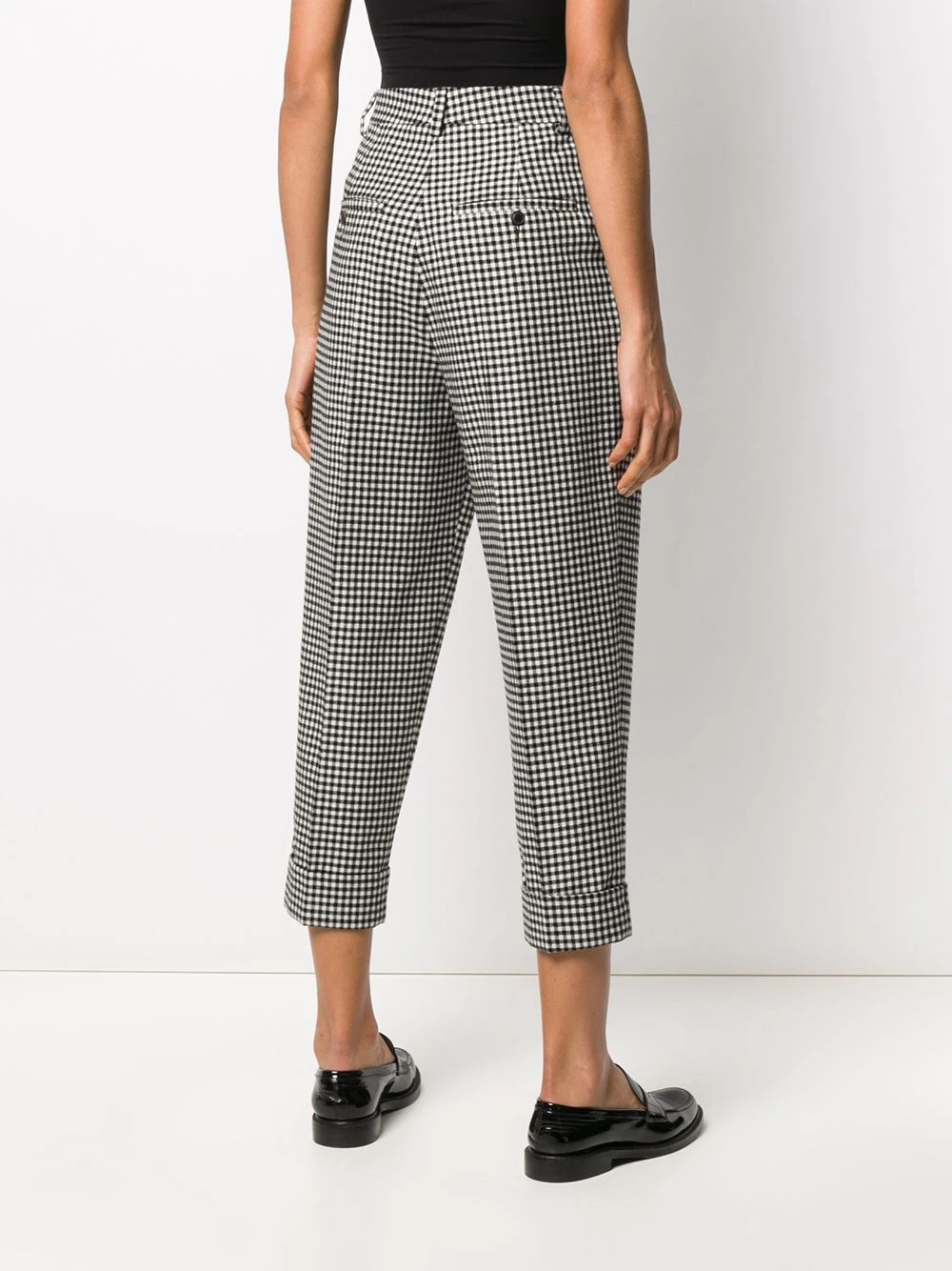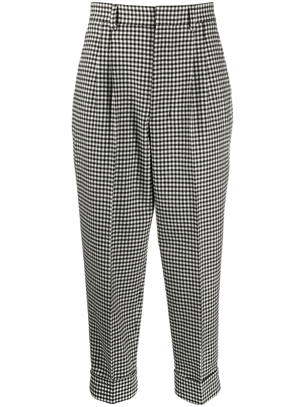 Pantalon crop à motif pied-de-poule AMI Paris avec taille haute, passants de ceinture à la taille, design plissé, poches latérales, poches arrière, motif pied-de-coq, coupe ample, coupe crop et ourlet à revers.