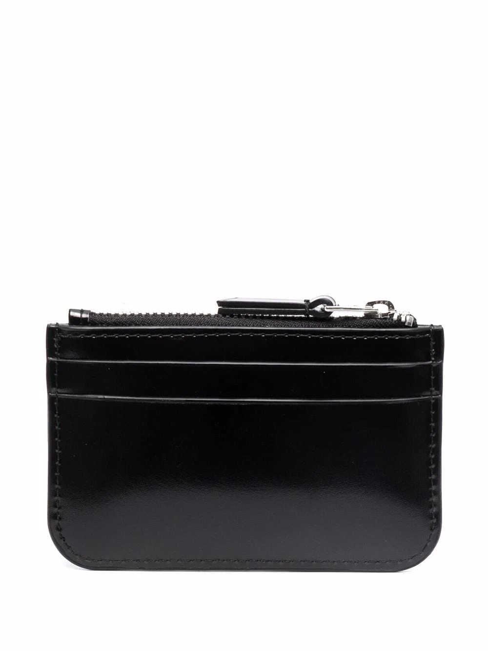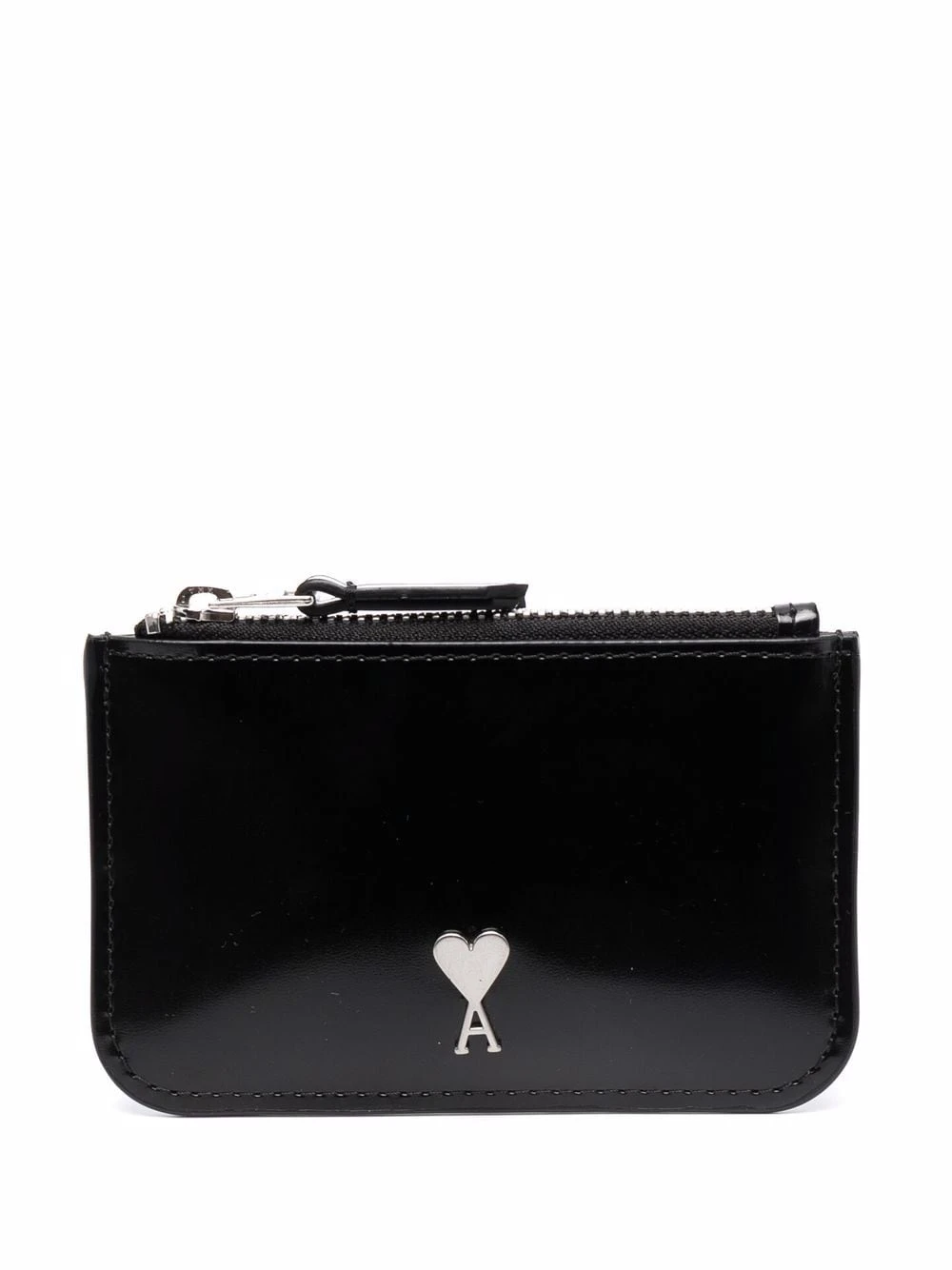 Ornements argentés, coutures ton sur ton, fermeture zippée sur le dessus, compartiment principal, fentes pour carte. Couleur : noir. Matière : cuir.
