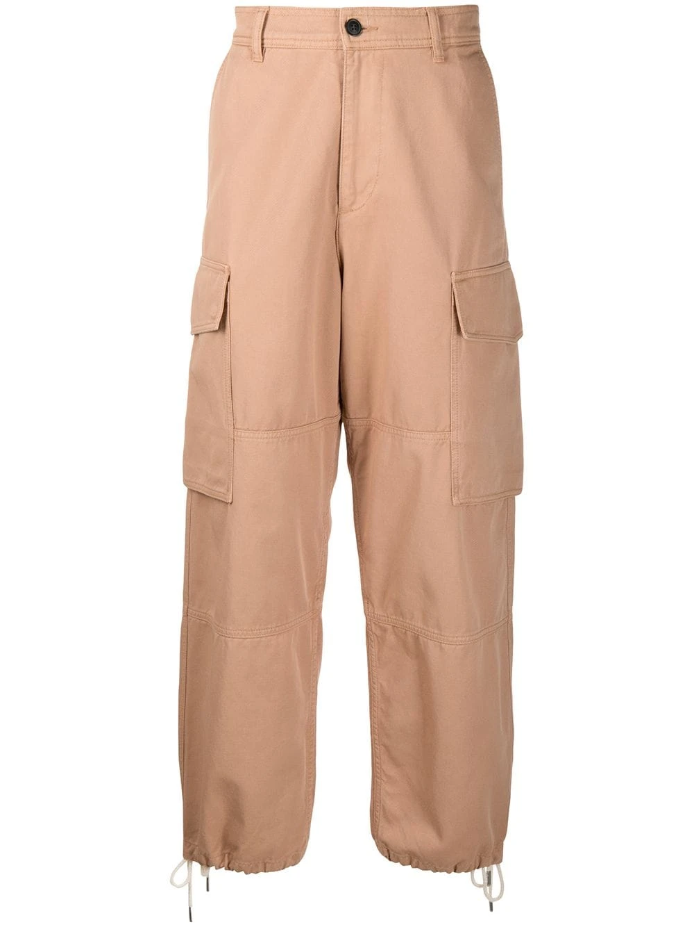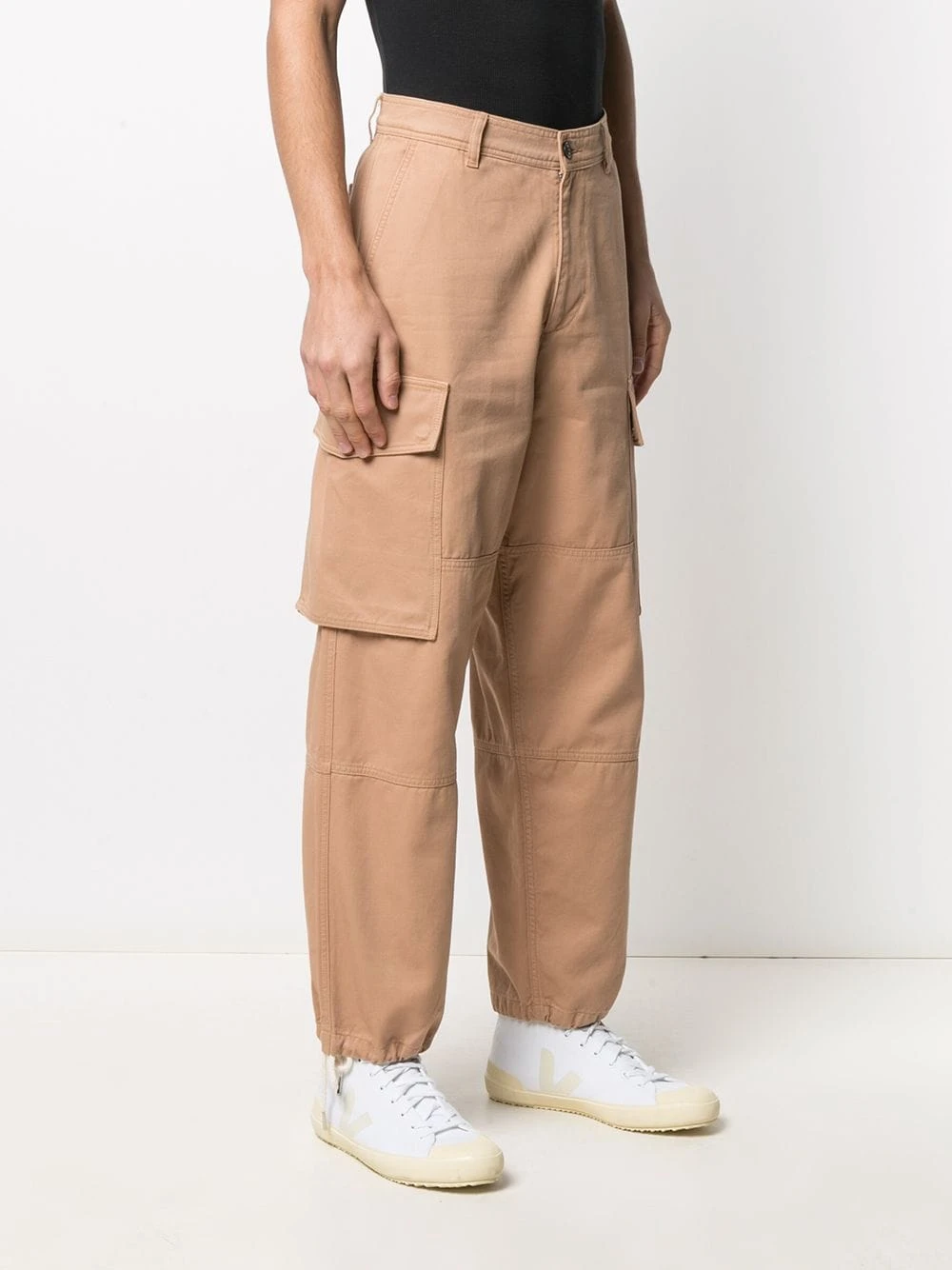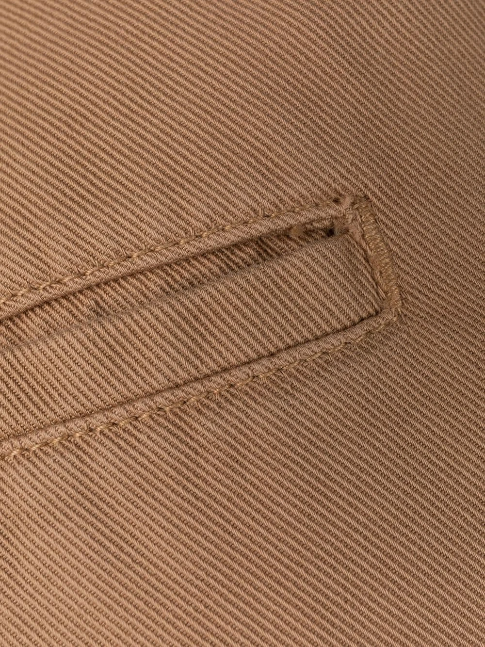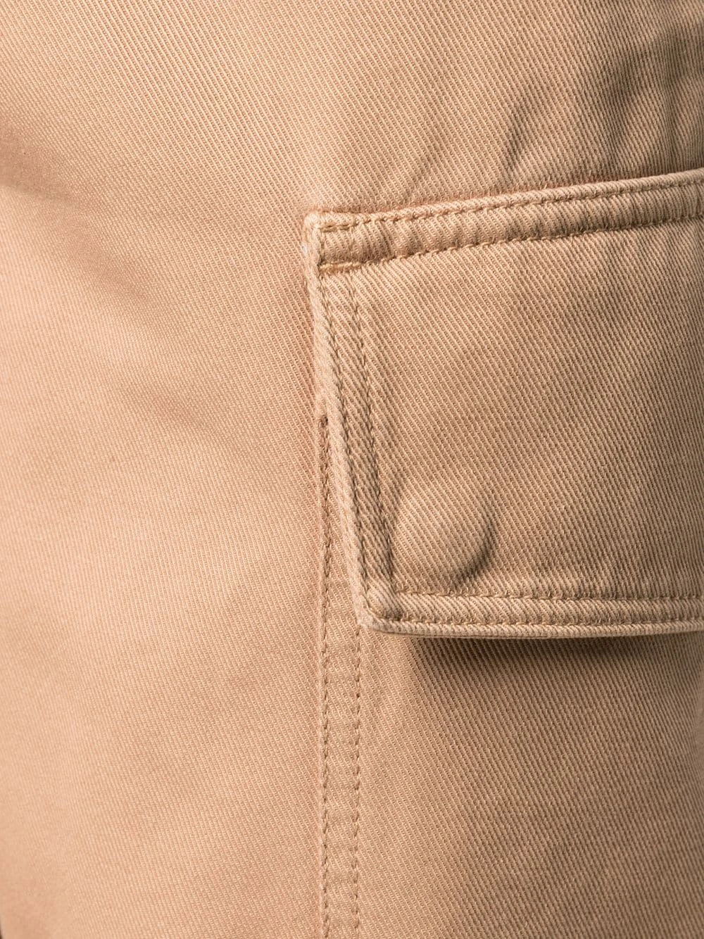 Passants de ceinture, fermeture à zip et boutons sur le devant, deux poches latérales passepoilées, poches arrière passepoilées, poches latérales cargo, ourlet élastiqué. Matière : coton.