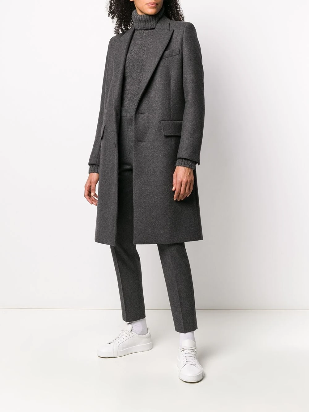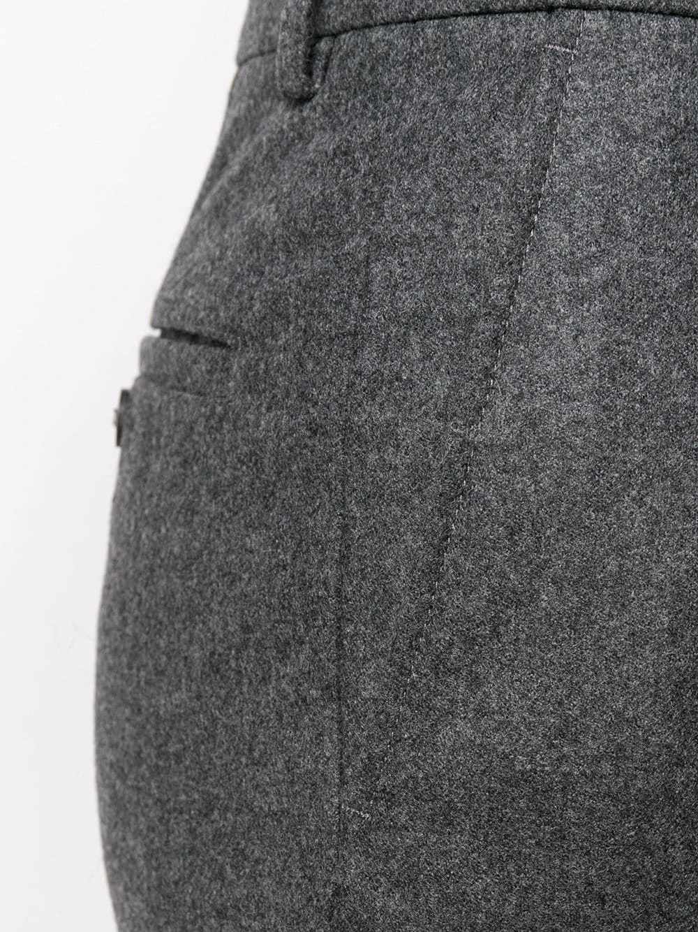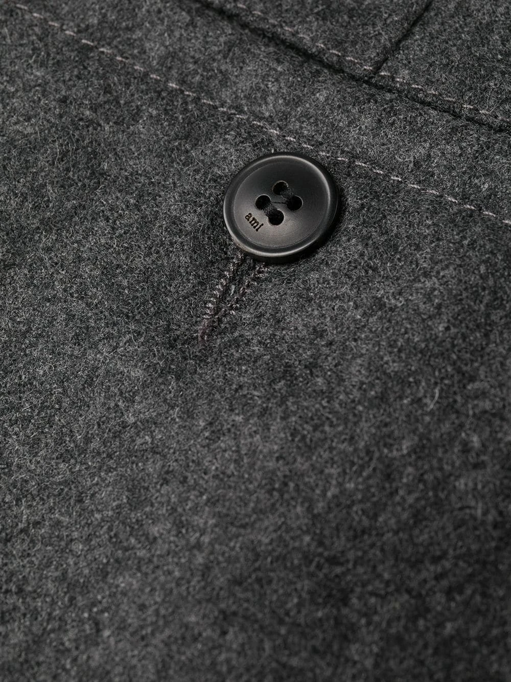 Pantalon droit crop en laine vierge AMI Paris avec taille haute, passants de ceinture à la taille, fermeture devant dissimulée, poches latérales fendues, deux poches arrière passepoilées et boutonnées, longueur crop et coupe fuselée.