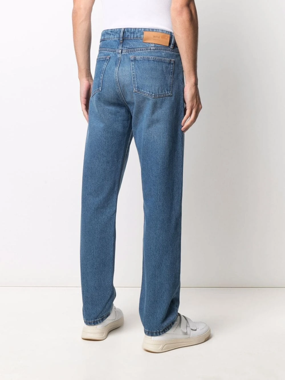 Effet délavé, cinq poches classiques, patch logo sur l’arrière, passants de ceinture, boutonnière sur le devant. Matière : coton.